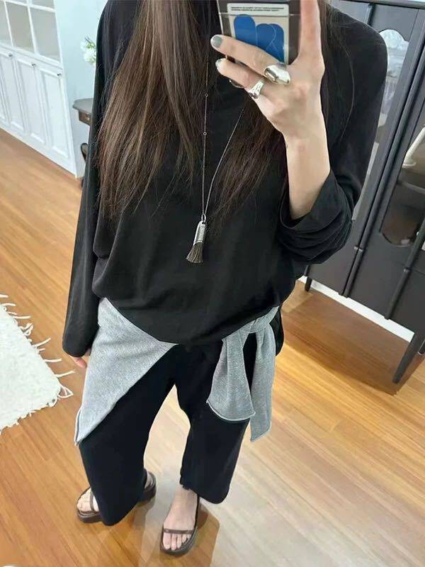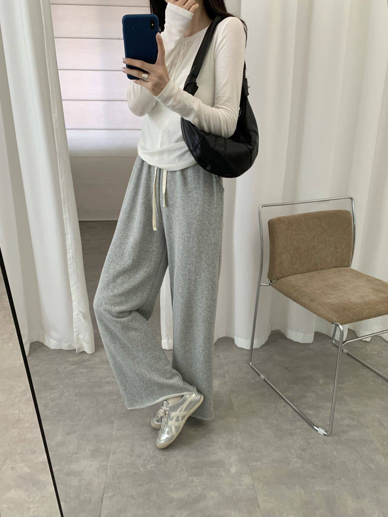 nothing written松紧腰抽绳毛边九分裤女春夏毛圈直筒休闲卫裤 [Original Page Link]
