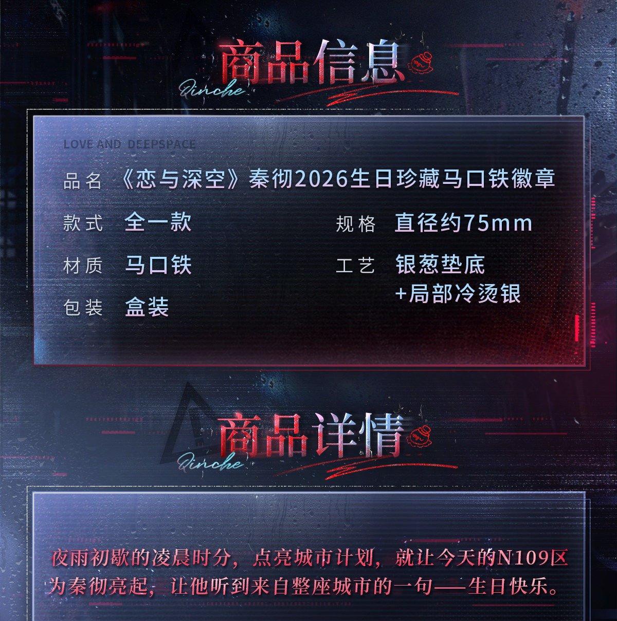 《恋与深空》秦彻2026生日珍藏马口铁徽章 预售 [Original Page Link]