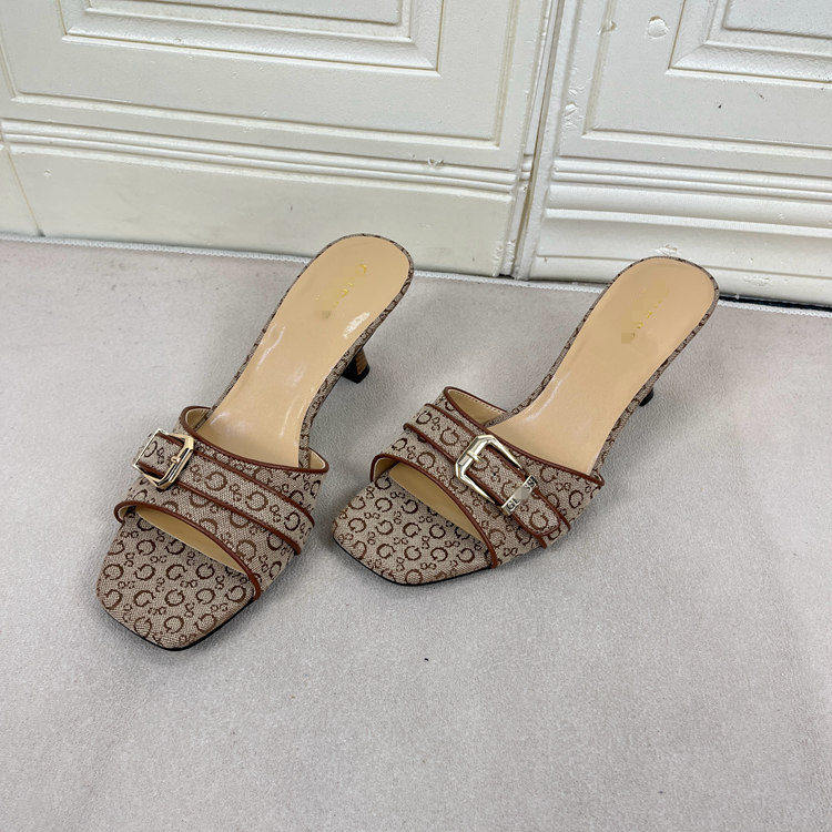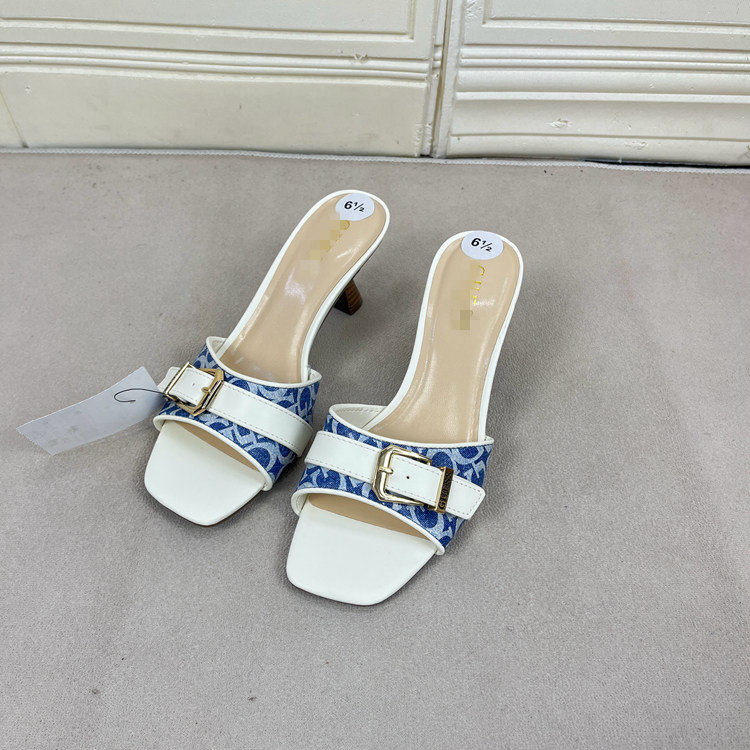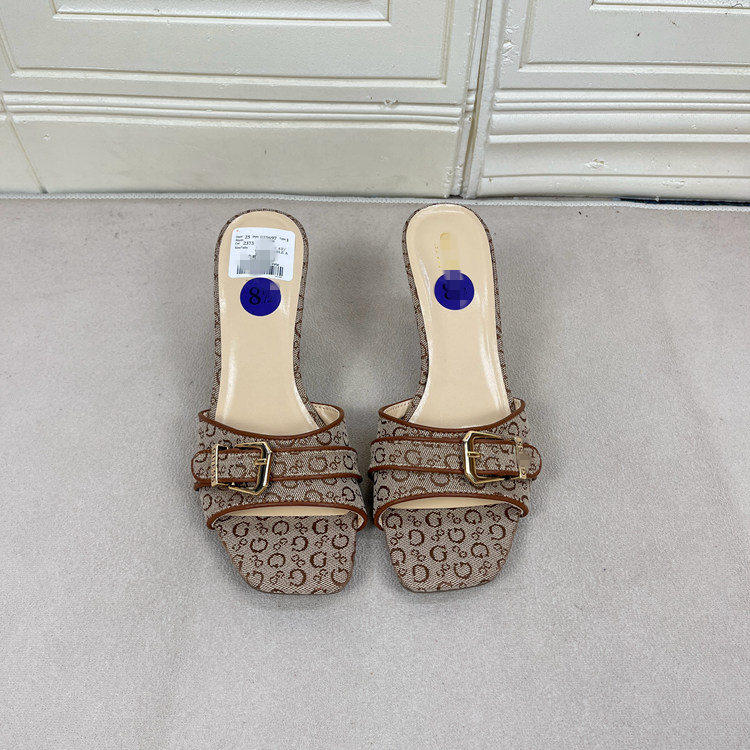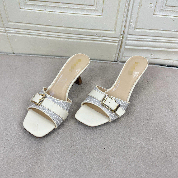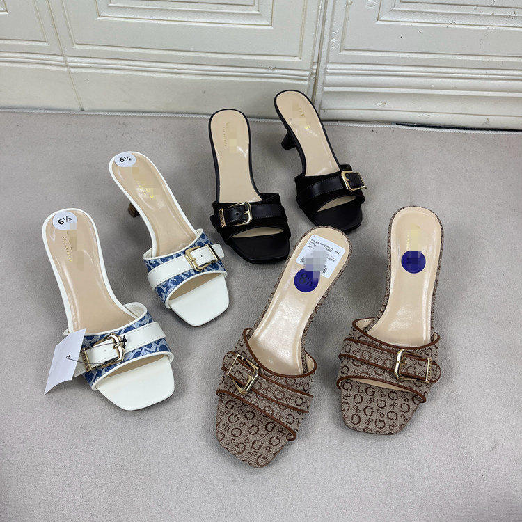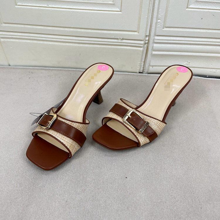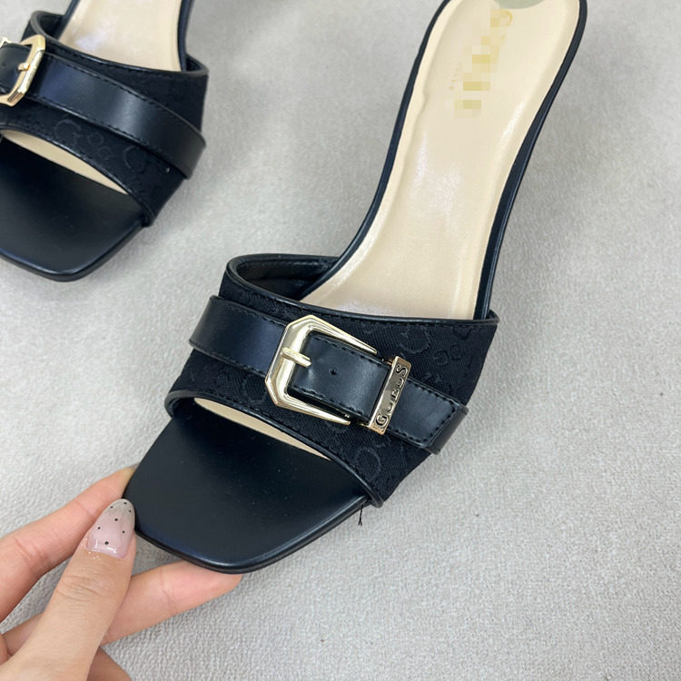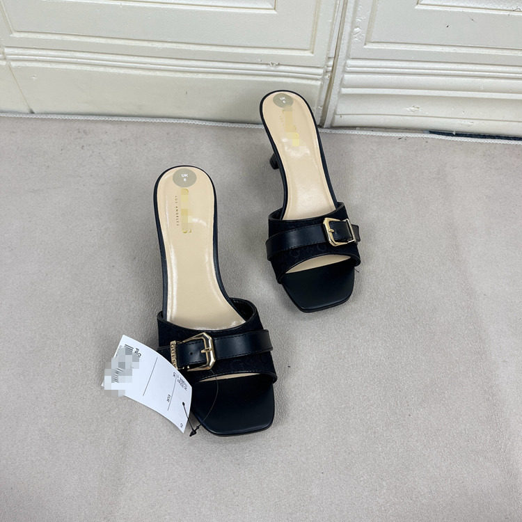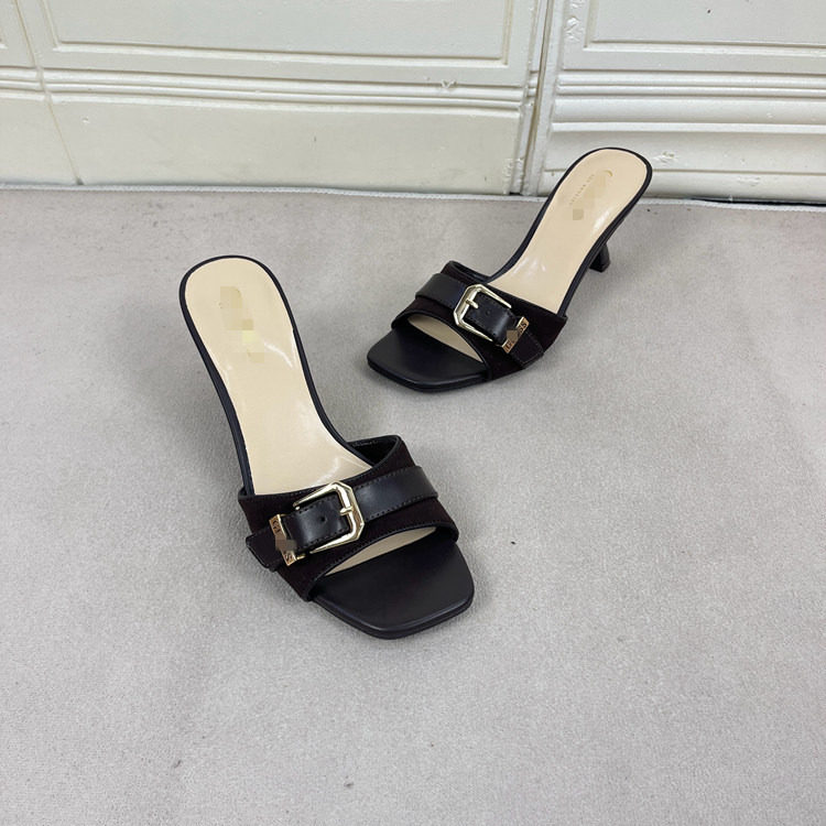 Lady Shoes外贸原单女鞋方头细跟金属扣时尚百搭时装新款凉拖鞋 [Original Page Link]
