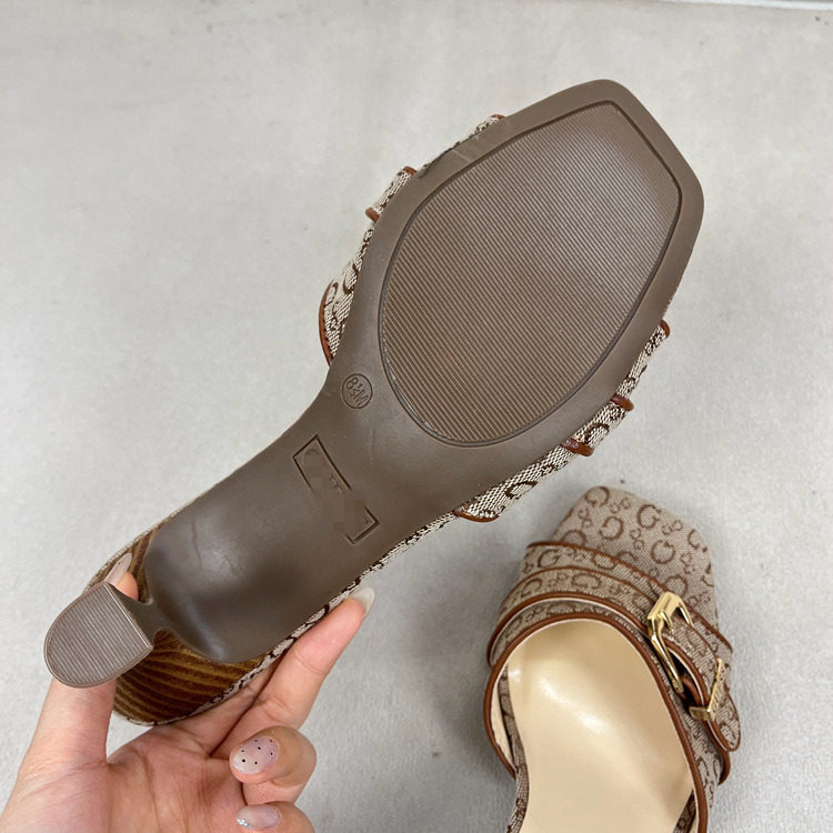 Lady Shoes, original export women's shoes, square toe, stiletto heel, metal buckle, fashionable and versatile new style sandals.