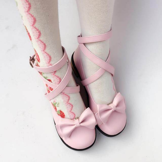30-52 large size shoes can be customized Lolita daily style bow cross strap low heel princess shoes 9812