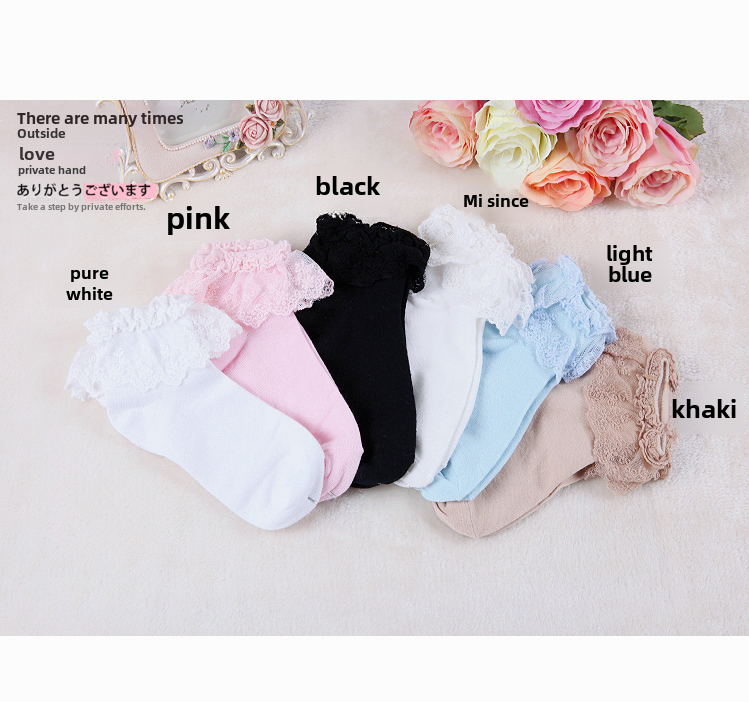 日式覆古蕾丝袜黑色美腿纯棉袜公主白色森林蕾丝袜短筒袜 [Original Page Link]