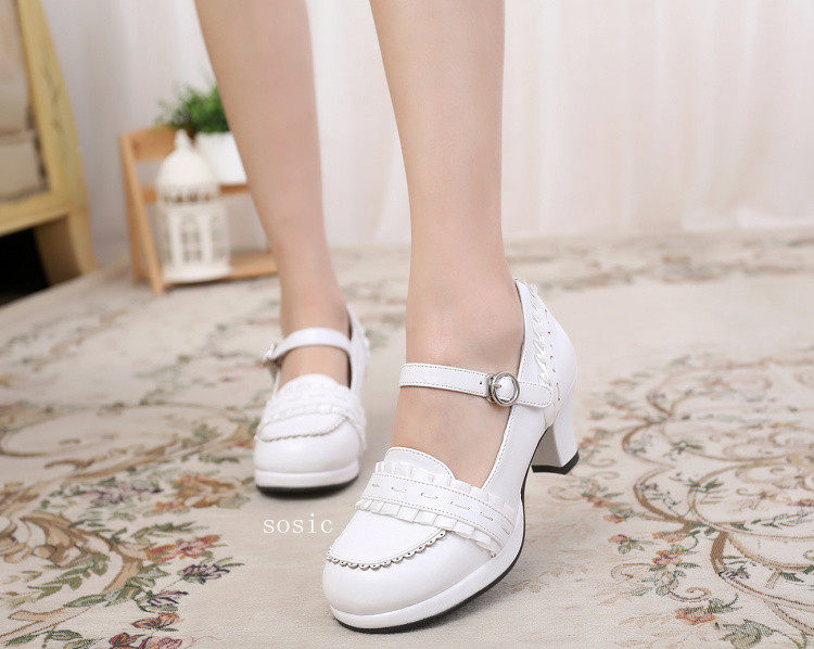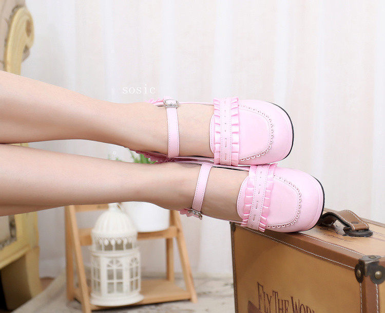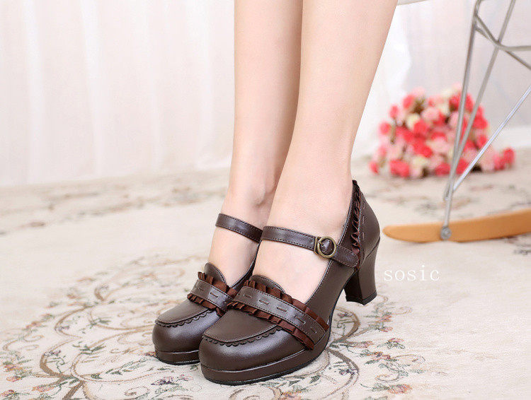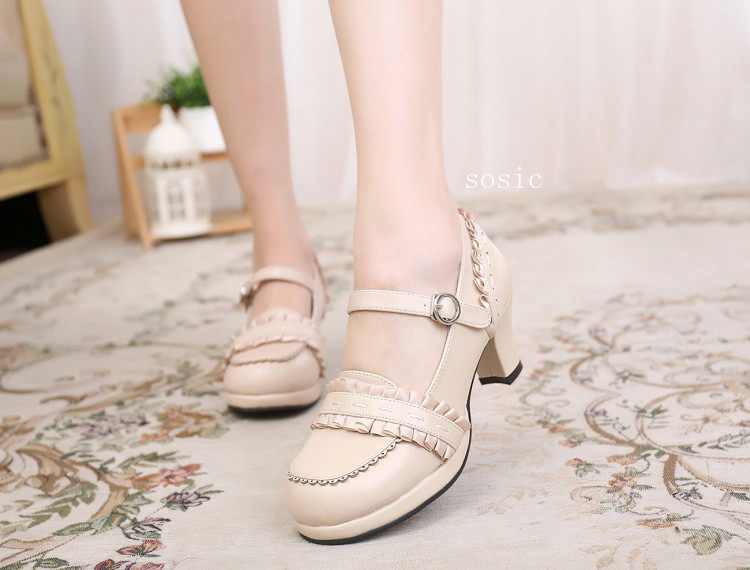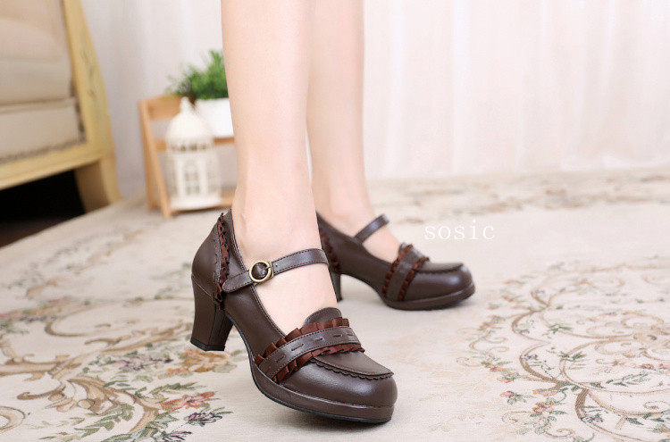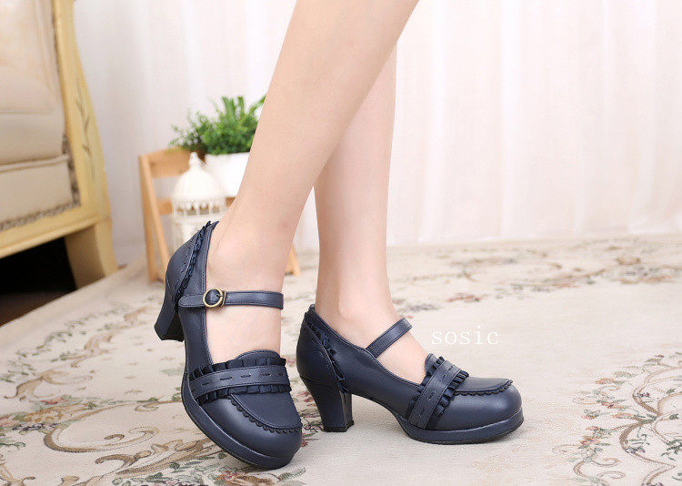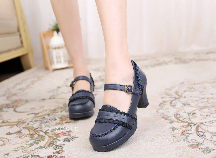 [元心李福]丝带甜洛丽塔圆头纯色厚高跟小皮鞋洛丽塔 [Original Page Link]