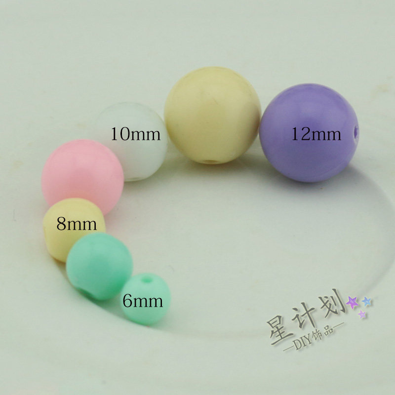 DIY饰品配件 亚克力冰激凌色6/8/10/12mm彩色塑料通孔串珠50颗价 [Original Page Link]