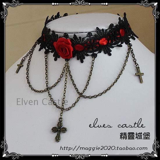 lolita吸血鬼覆古玫瑰十字架暗夜血族哥特洋装颈饰项炼仙蒂冷淡风 [Original Page Link]