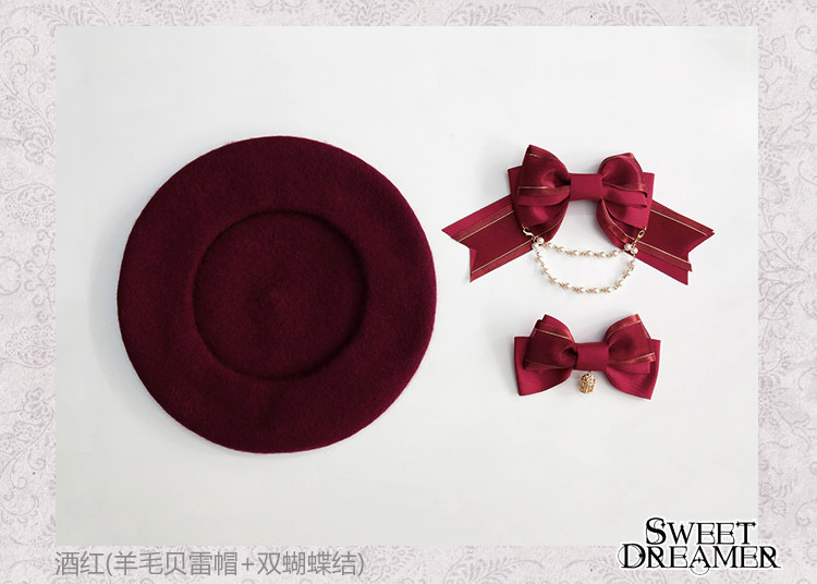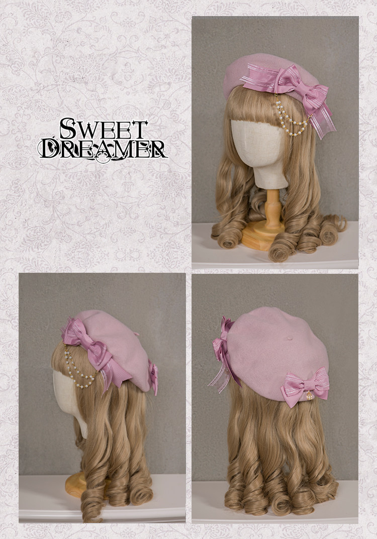 瓦希莉莎 蝴蝶结珠链可拆卸羊毛贝雷帽 SweetDreamer [Original Page Link]