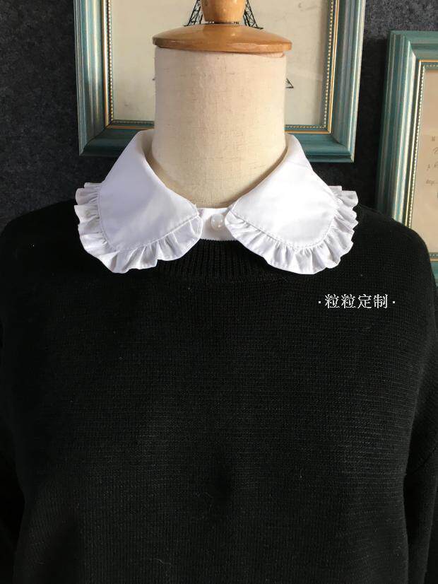 粒粒定制 复古小圆领假领子彼得潘纯棉花边可爱百搭娃娃领新款 [Original Page Link]