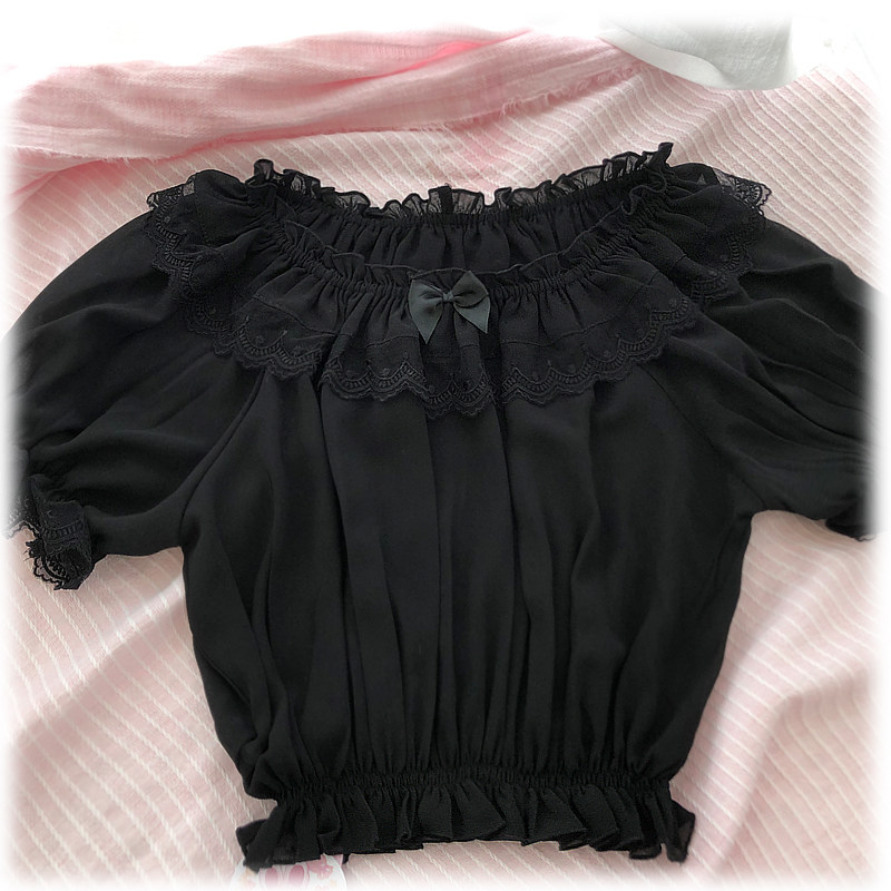 Homemade soft sister LOLITA dress inside take summer short-sleeved short chiffon shirt lace princess blouse