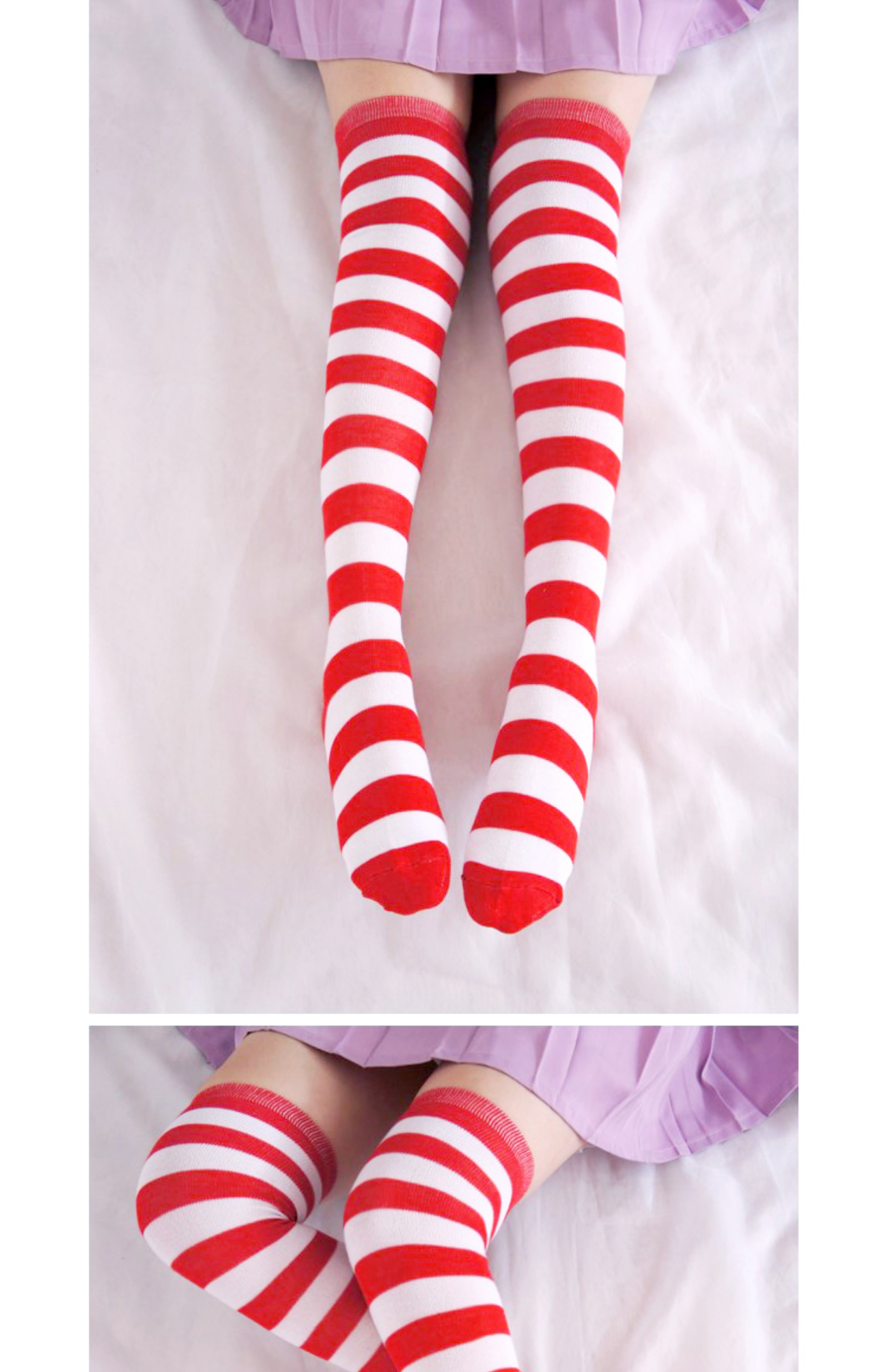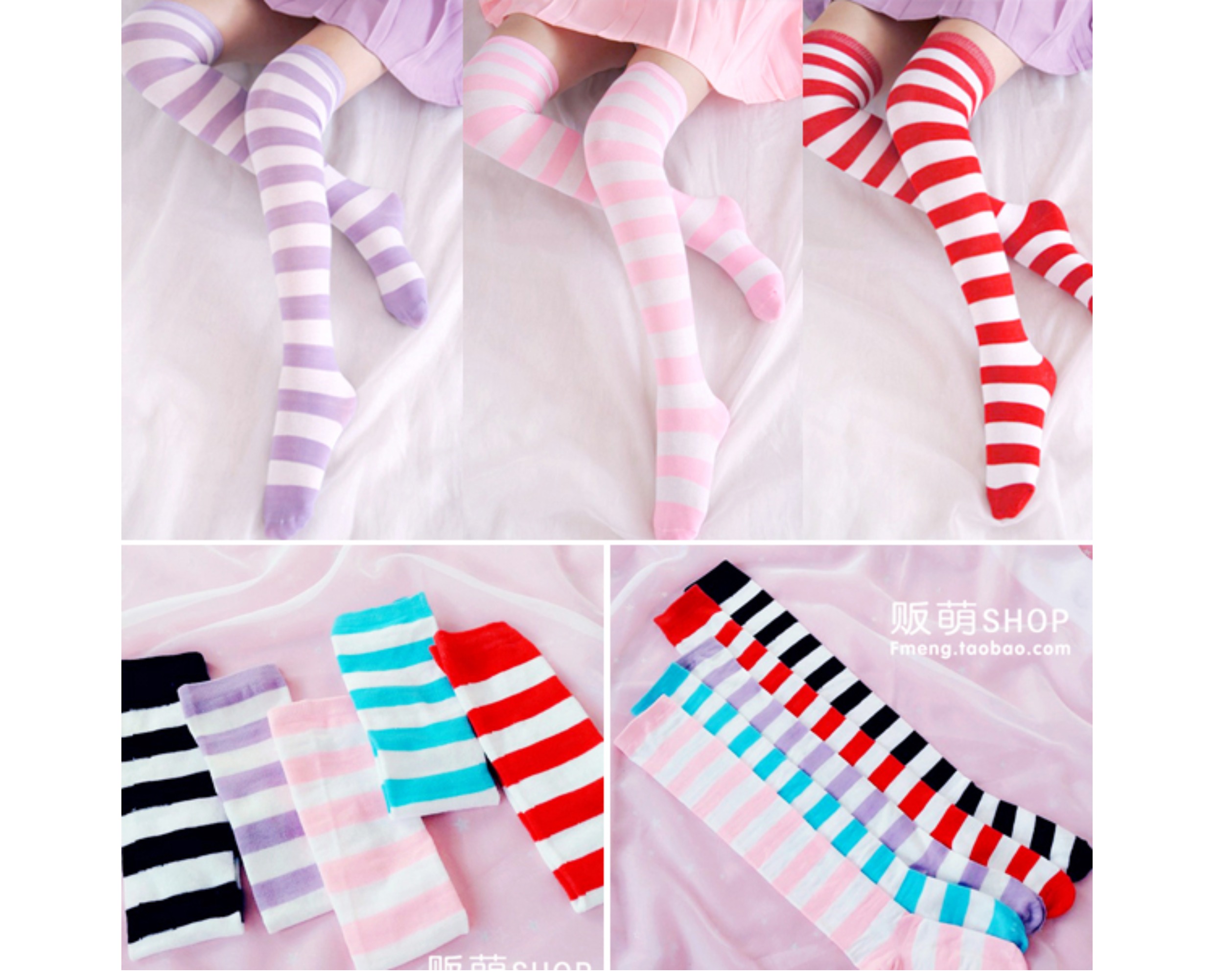 Absolute territory socks cosplay Japanese style high-top over-the-knee socks, pure cotton blue, white, pink and white striped socks, thigh socks