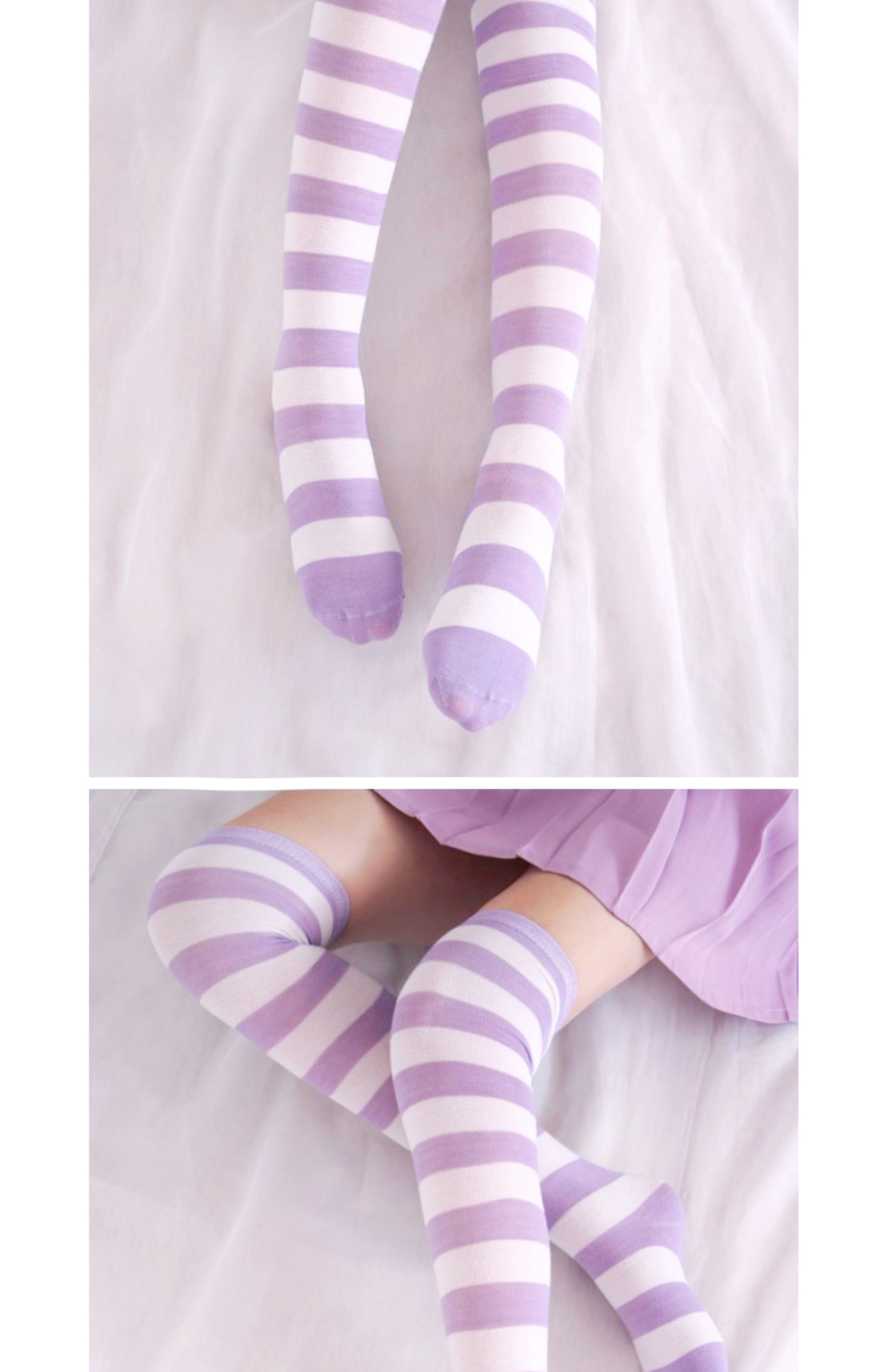 绝对领域袜cos日系高筒过膝袜子纯棉蓝白粉白条纹袜大腿袜 [Original Page Link]