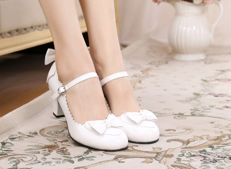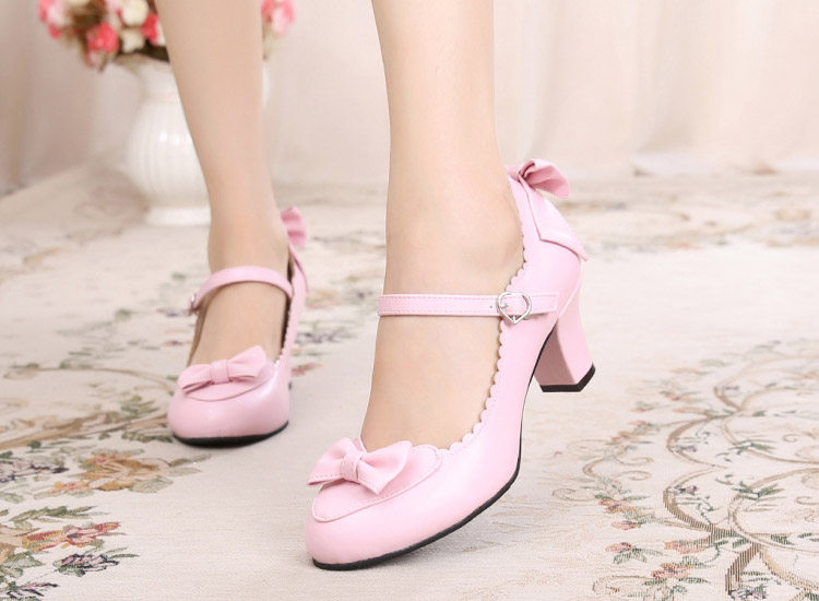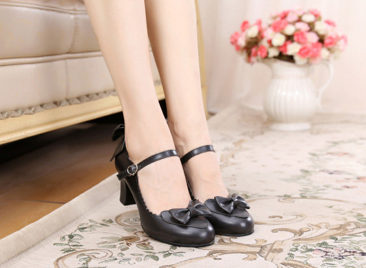 【圆绛音】原创日常圆头可爱心蝴蝶结高粗跟单纯手工小皮鞋Lolita [Original Page Link]
