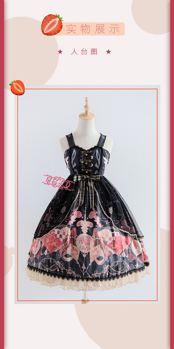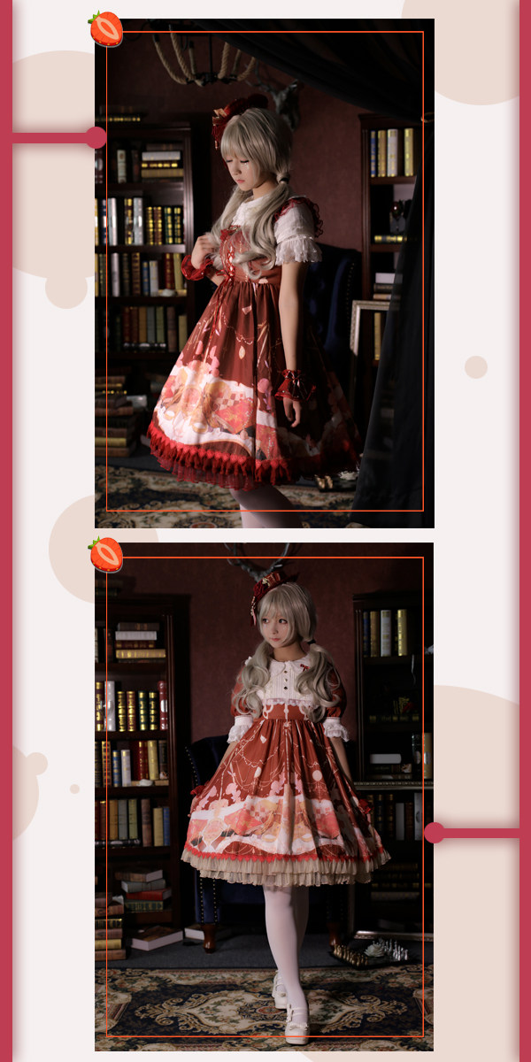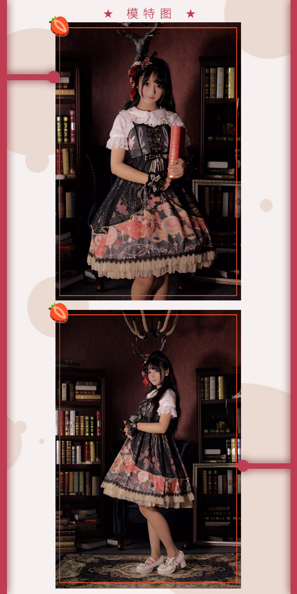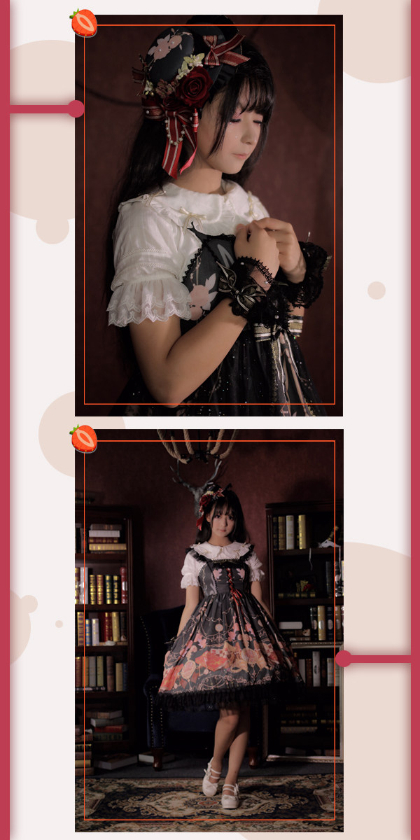 Strawberry witch clock chess Yuki series original lolita dress design dark pattern cotton shirt