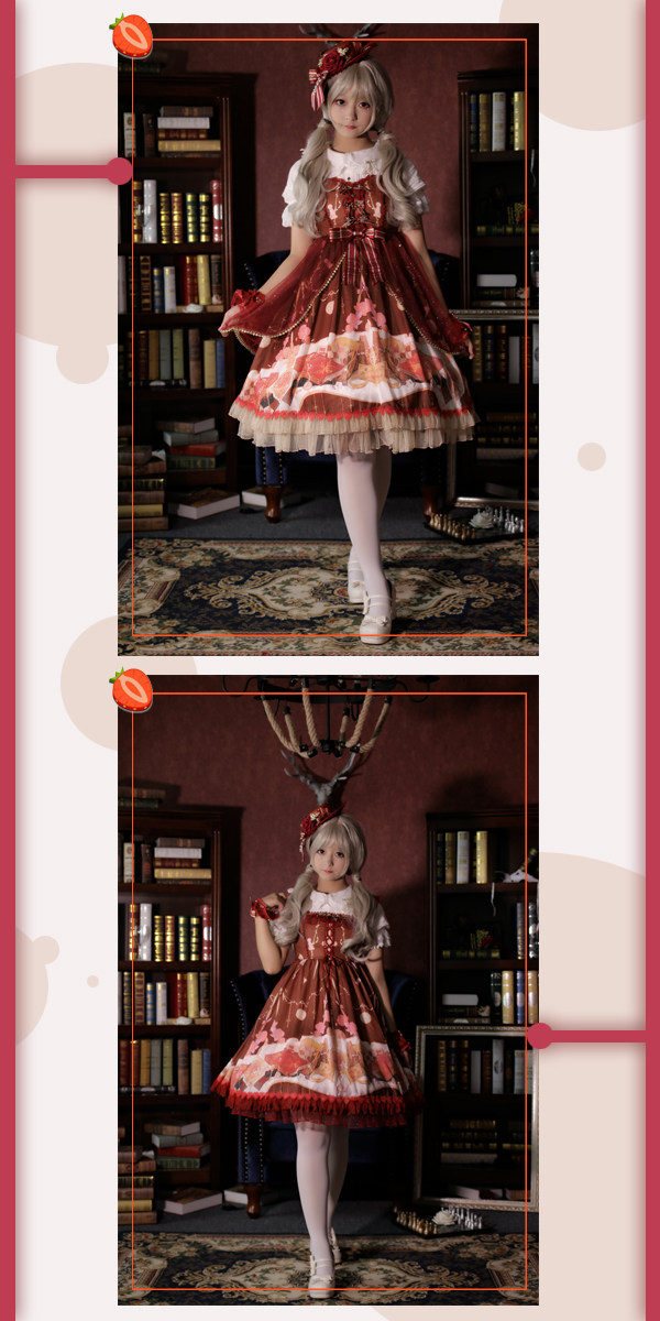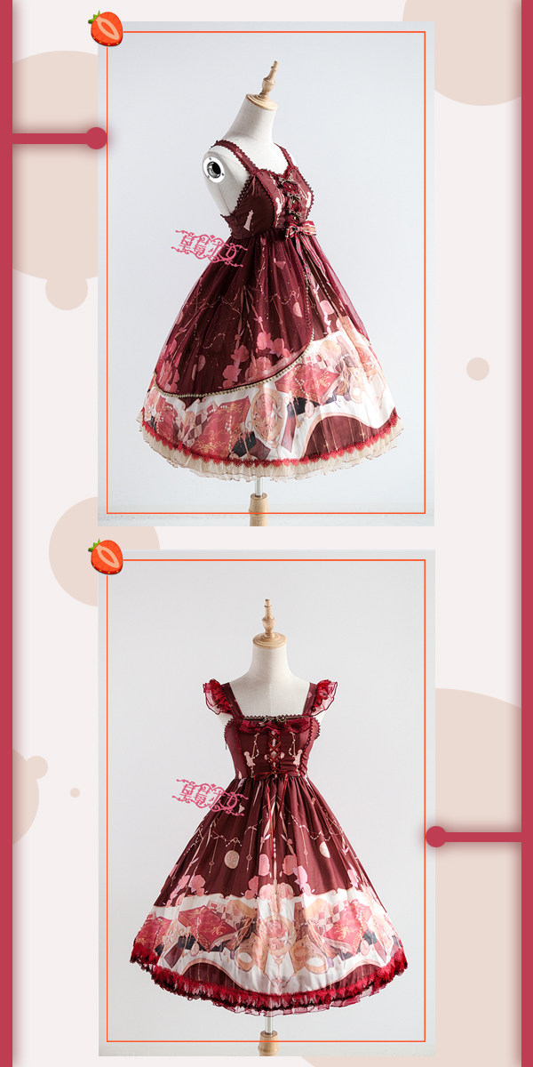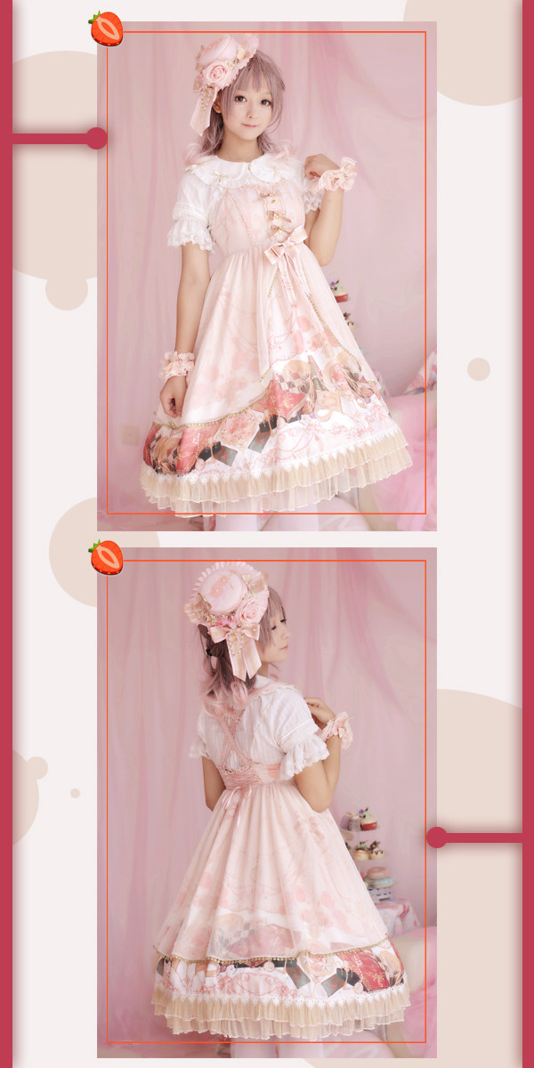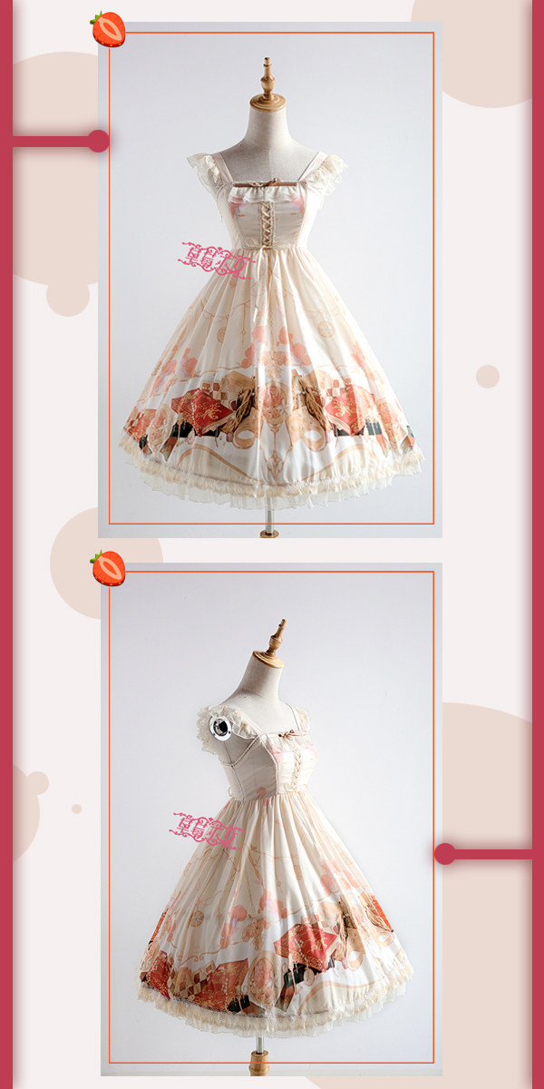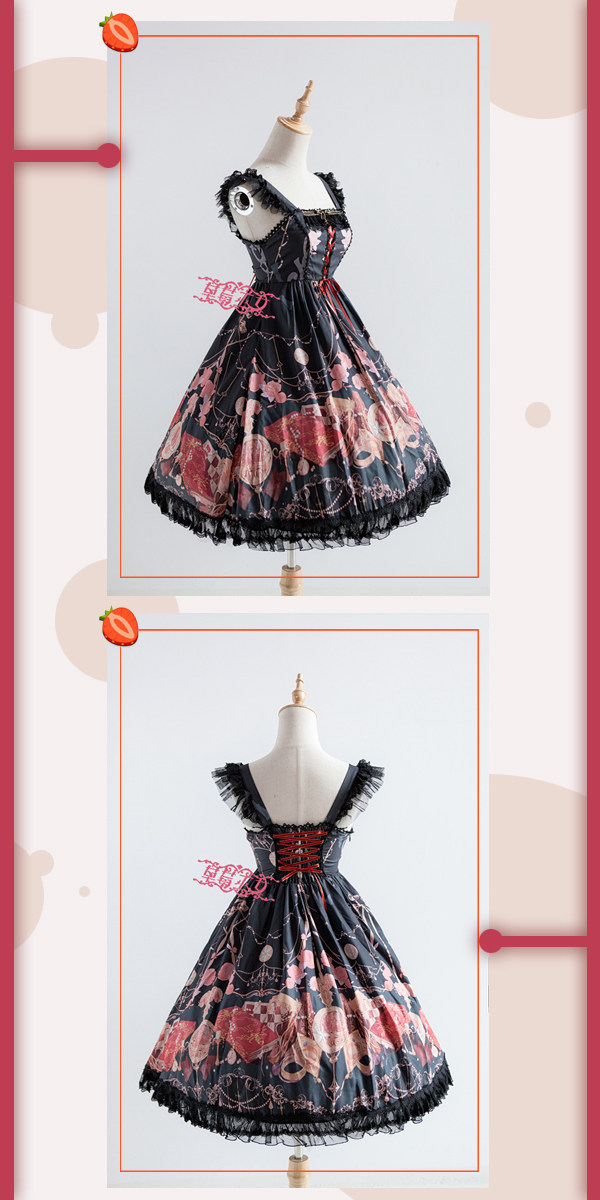 Strawberry witch clock chess Yuki series original lolita dress design dark pattern cotton shirt