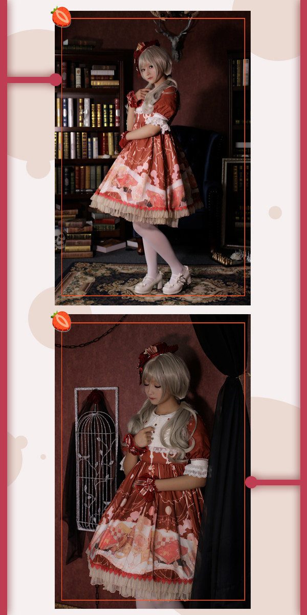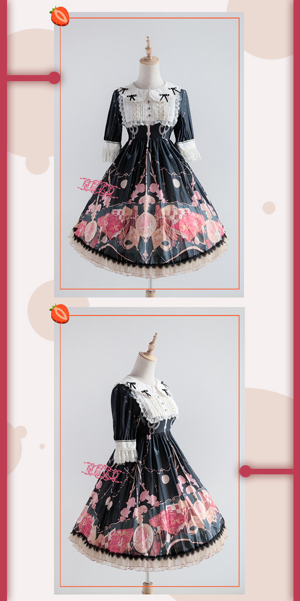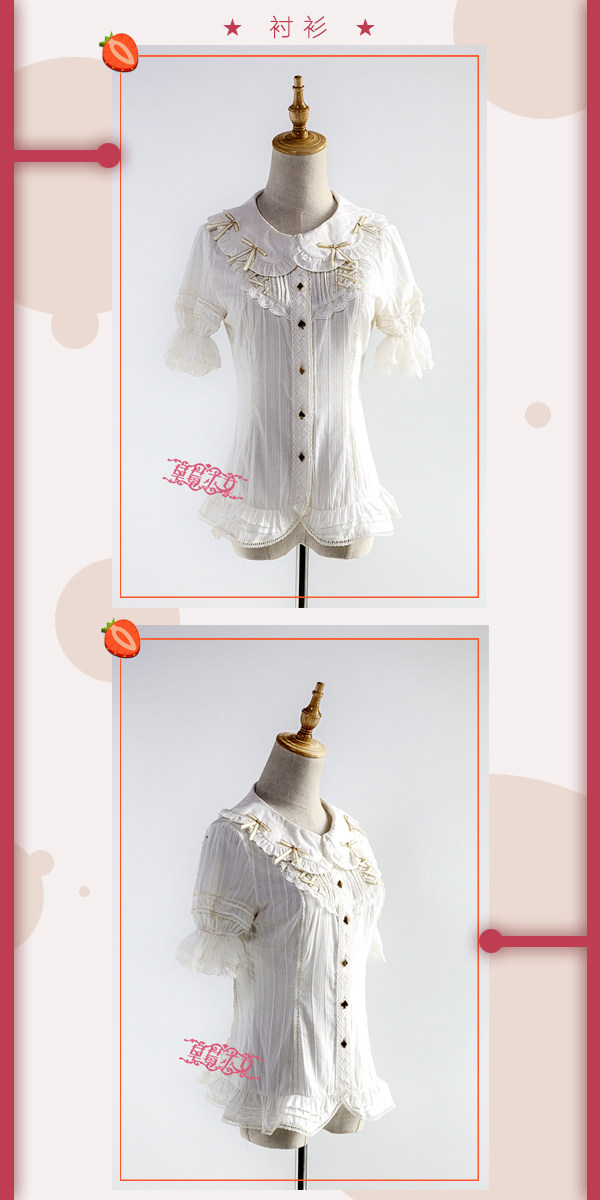 草莓巫女 时钟棋遇记系列原创lolita洋装设计暗纹全棉衬衣全款 [Original Page Link]
