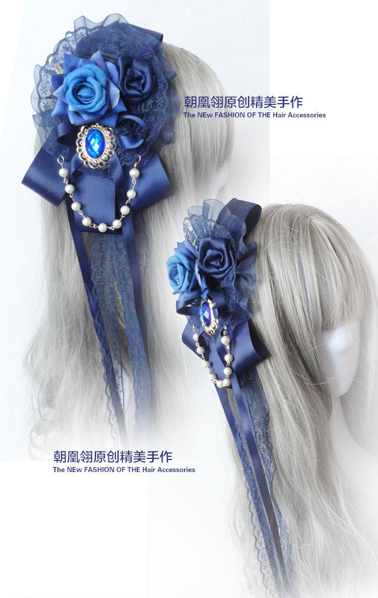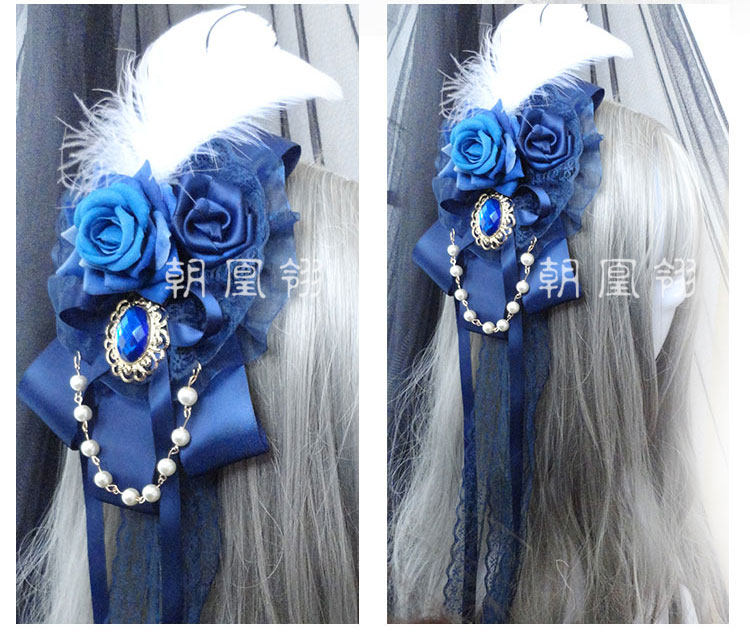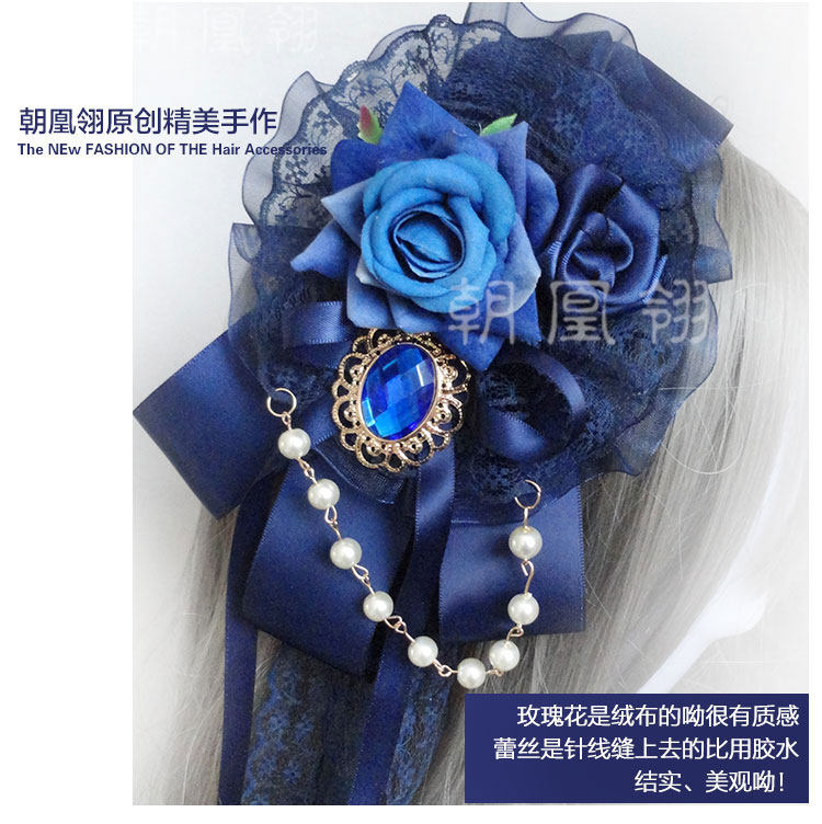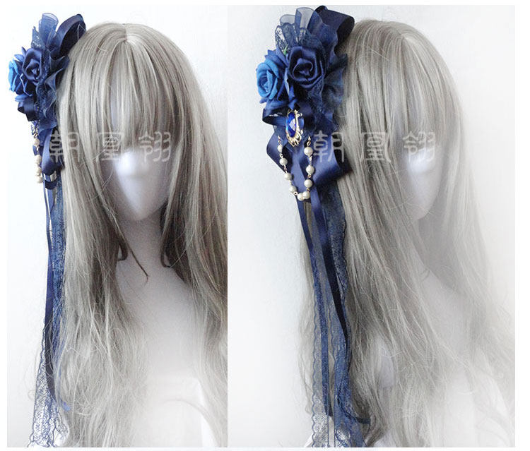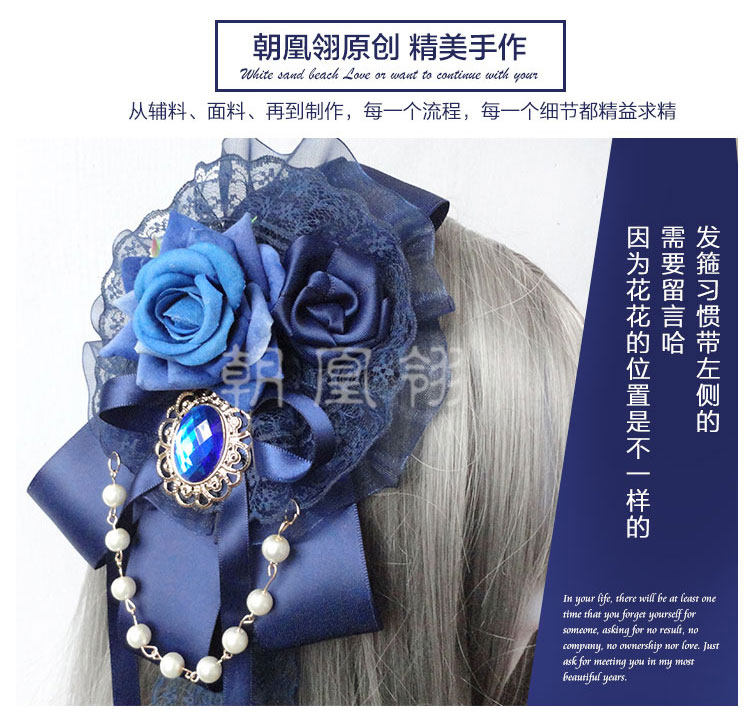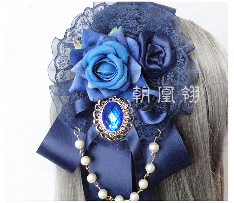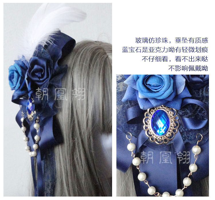 原创洛丽塔藏蓝色花丸发箍发夹lolita头饰玫瑰花萝莉发饰 [Original Page Link]