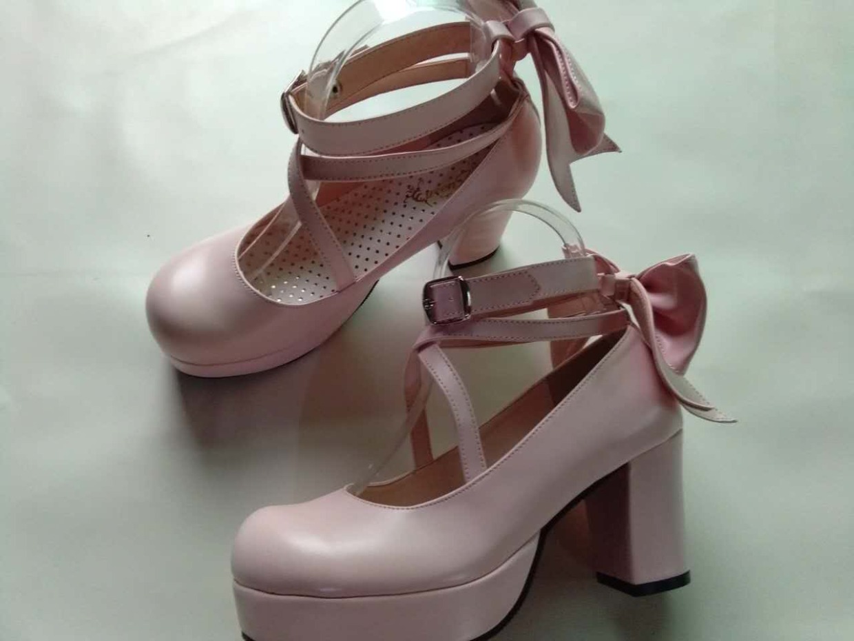 Japanese lolita red Lolita high heels magical girl Madoka bow cosplay Kaname Madoka shoes