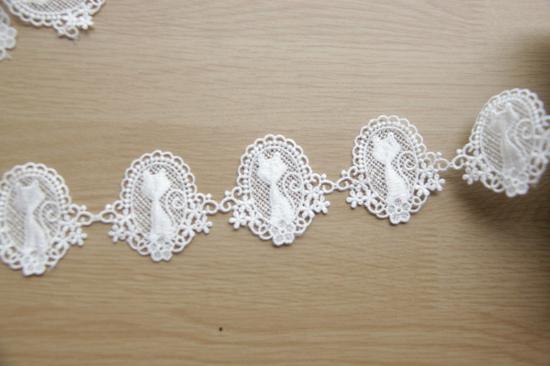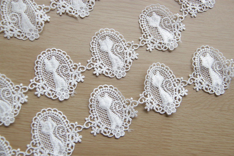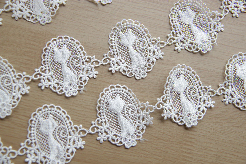 F14G11 Handmade DIY Clothing Accessories / Japanese Style Lace Mirror Cat Water-soluble Silk Thread Embroidery Lace Width 4.5cm