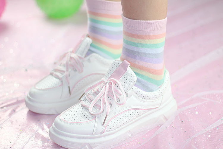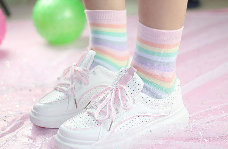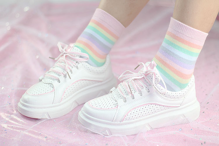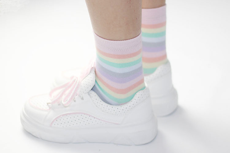 秋冬韩国软妹马卡龙冰淇淋彩虹袜韩版棉女短袜学生条纹堆堆袜子 [Original Page Link]
