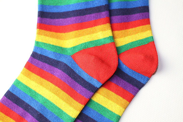 Autumn and winter Korean soft girl macaron ice cream rainbow socks Korean version cotton women's socks students striped pile socks