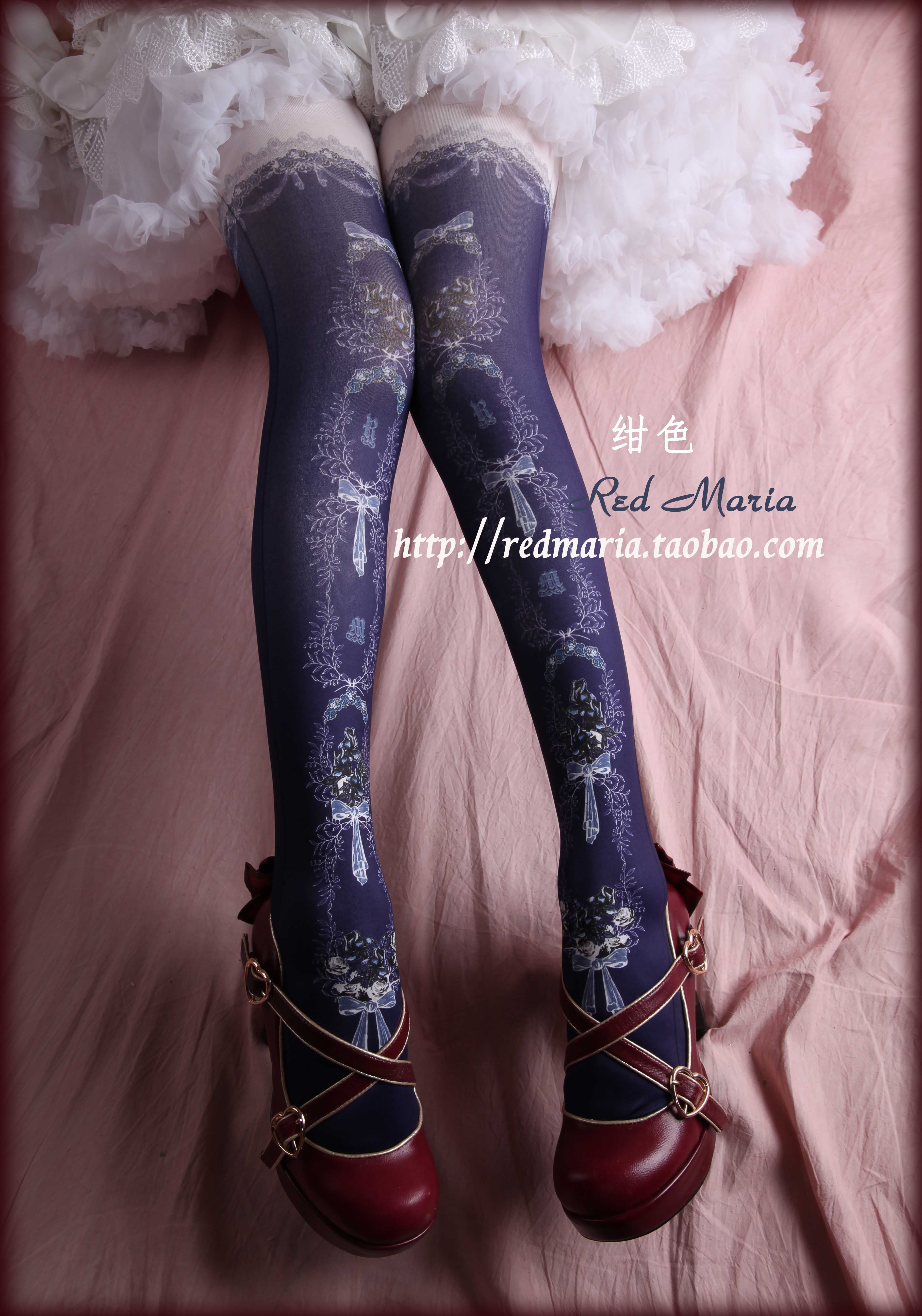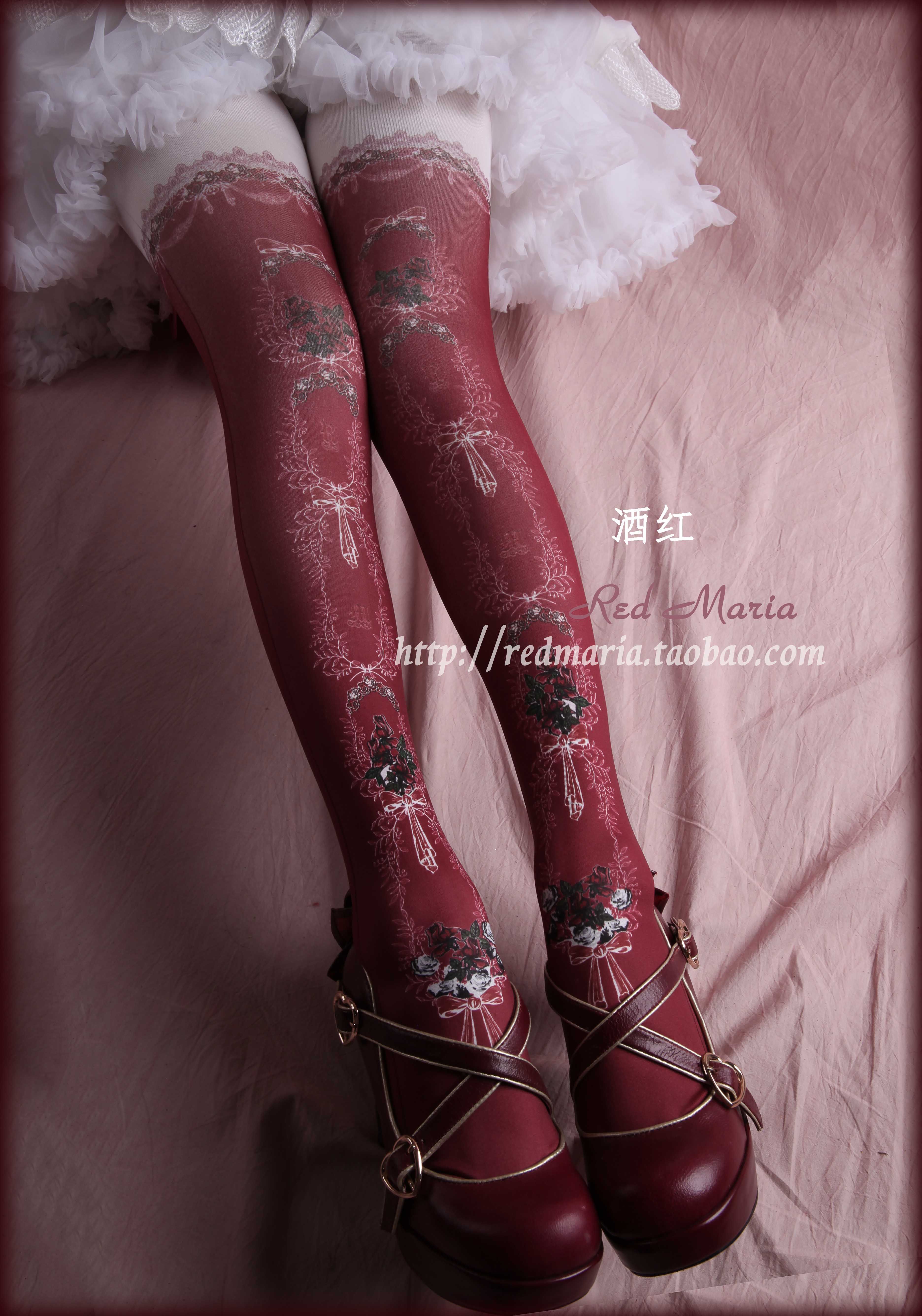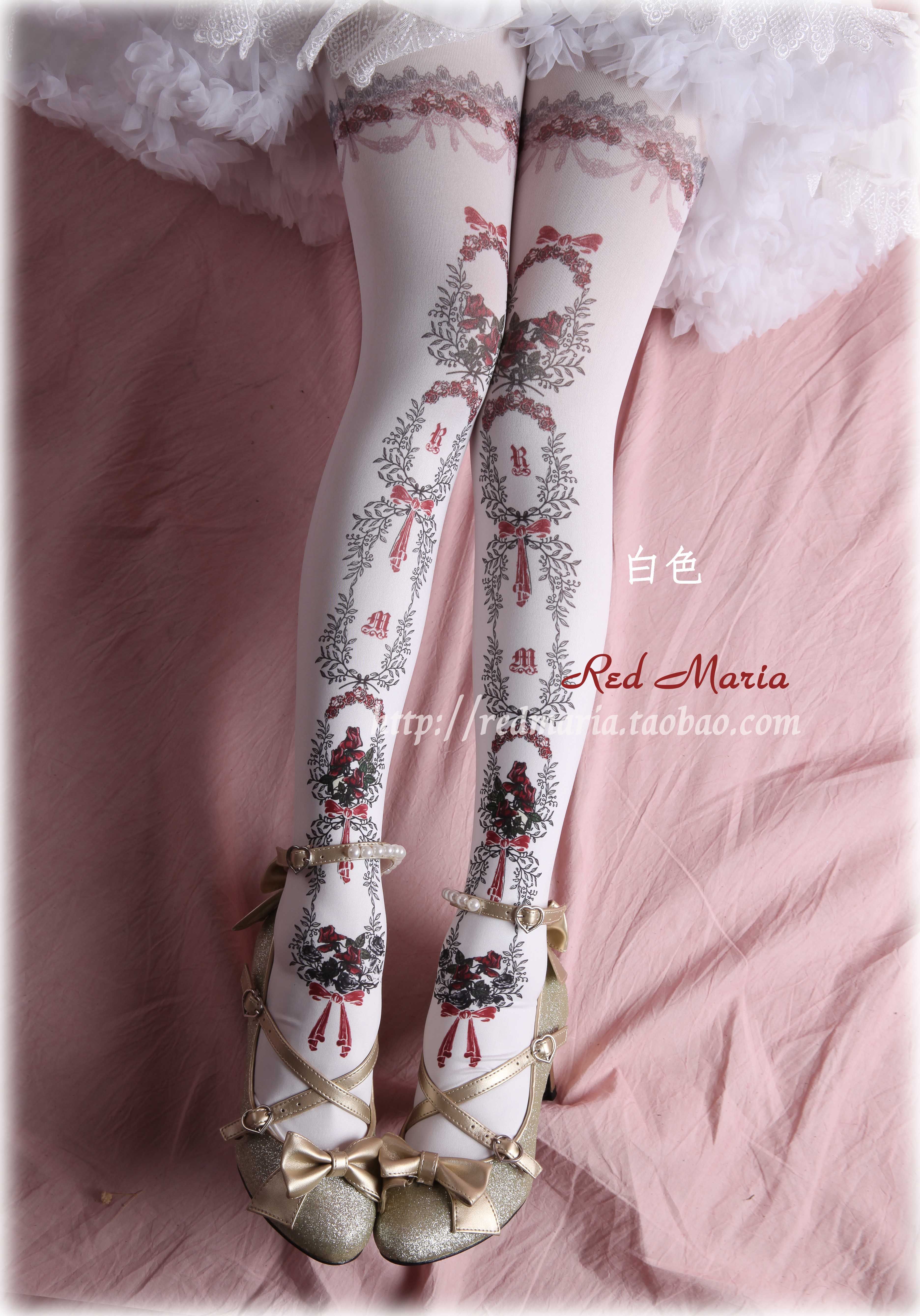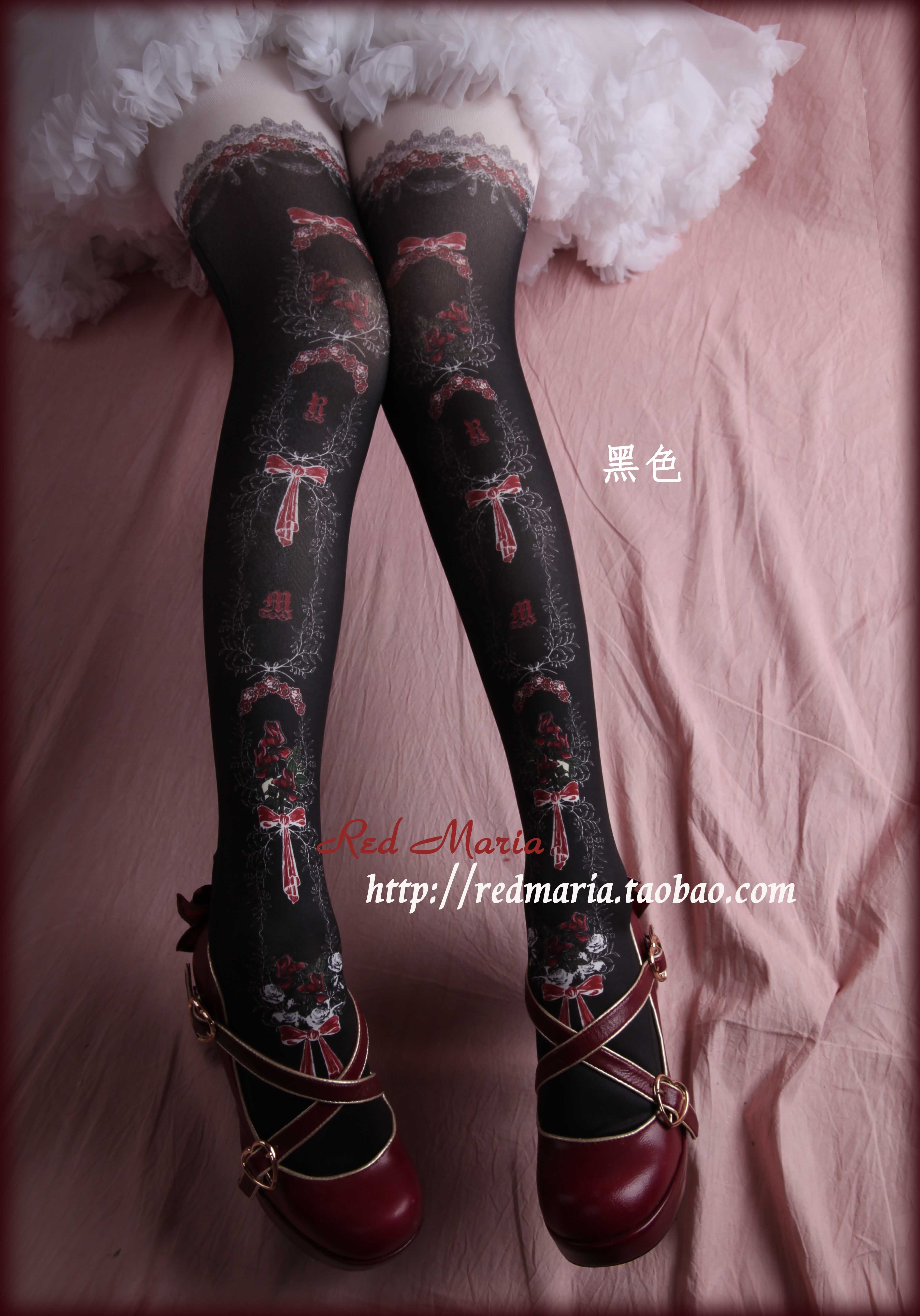玫瑰物语袜red maria lolita袜lo袜多色百搭原创印花连裤袜子原创 [Original Page Link]