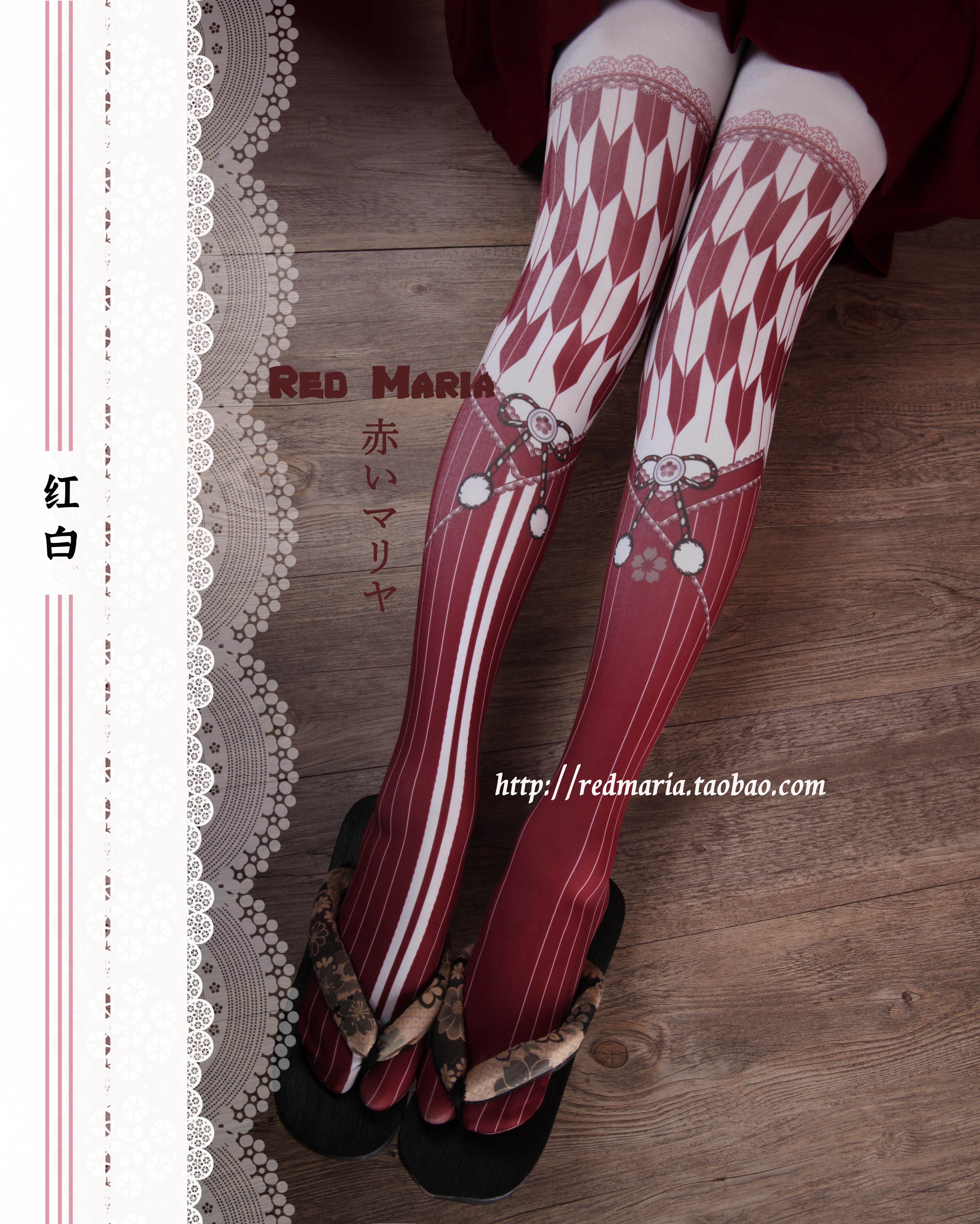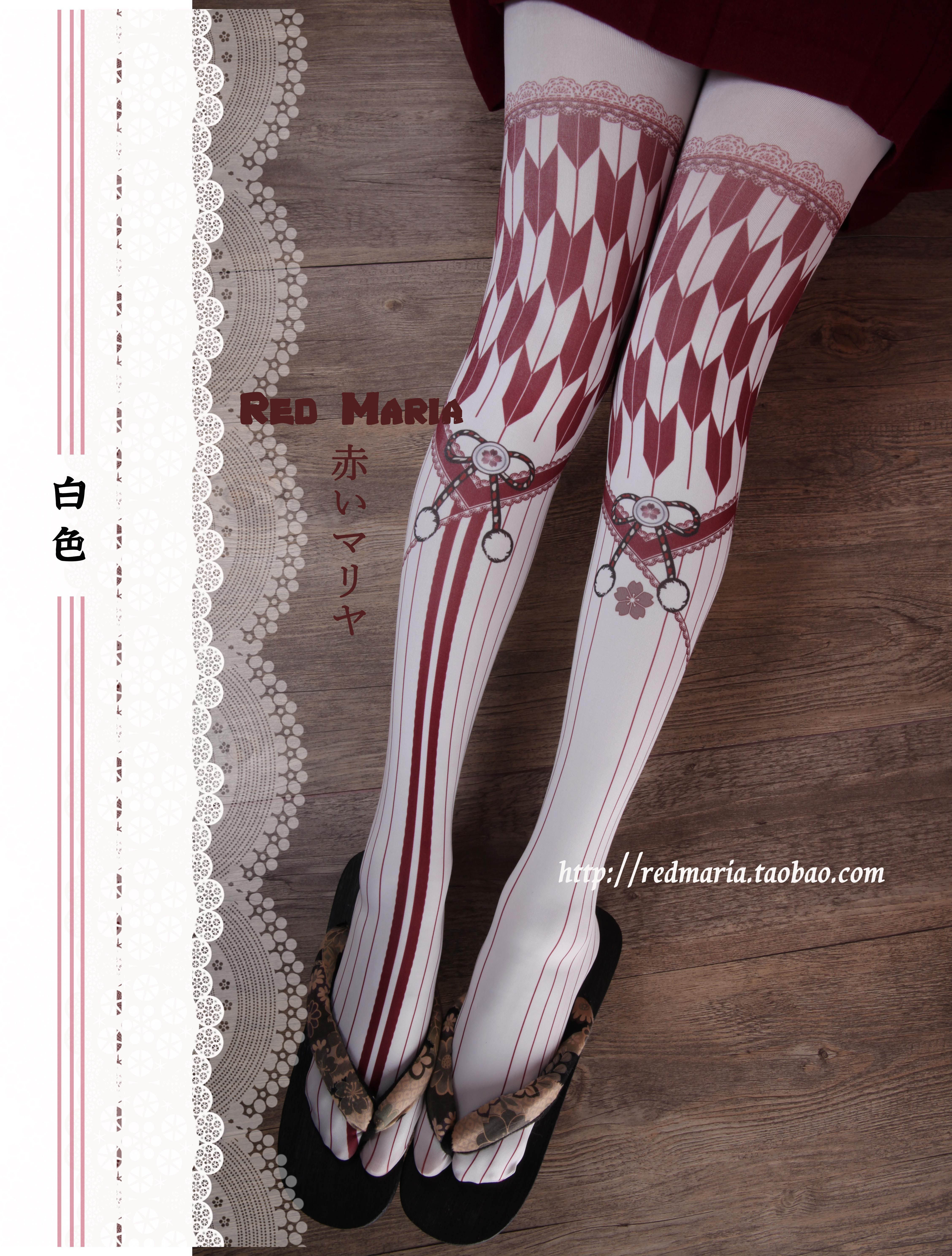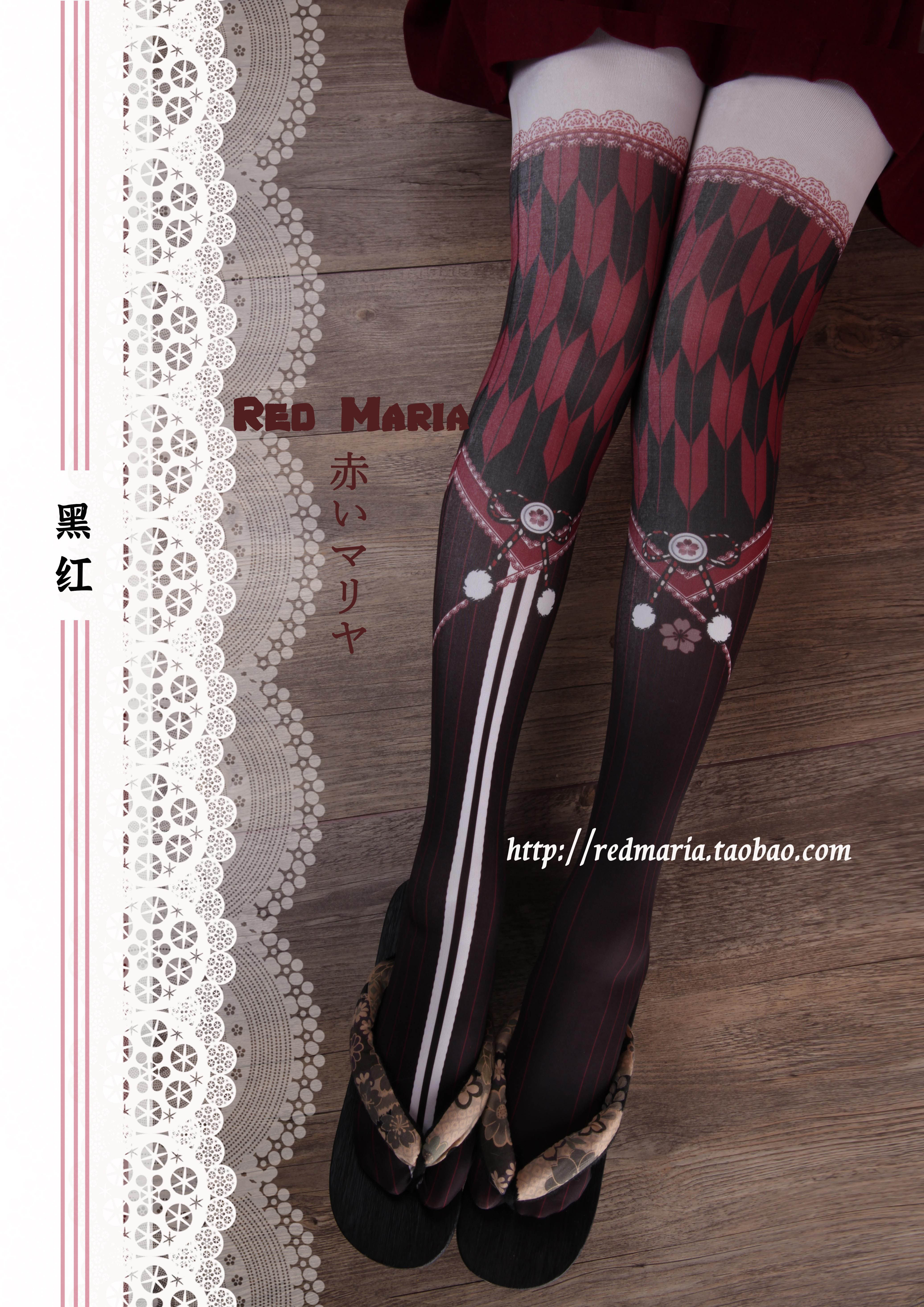 红玛莉原创大正风矢羽袜 黑白和风印花LO裙连裤袜子 [Original Page Link]