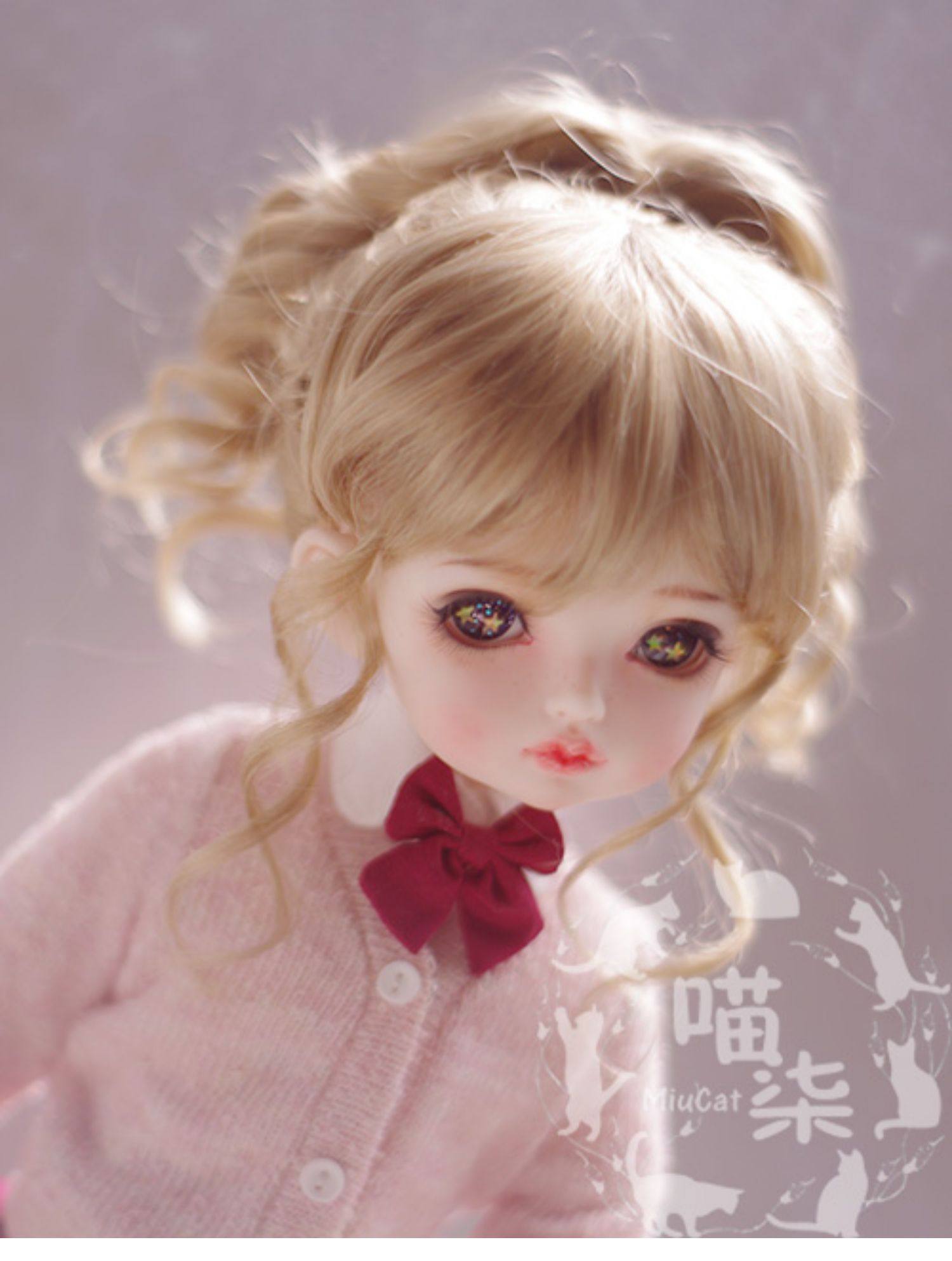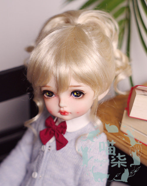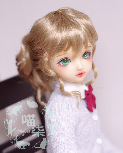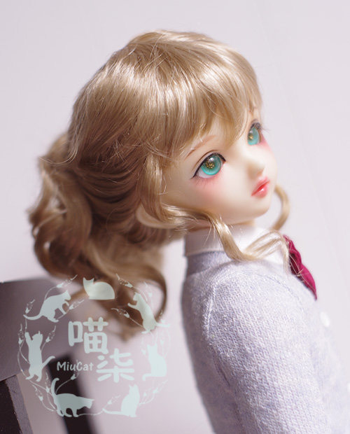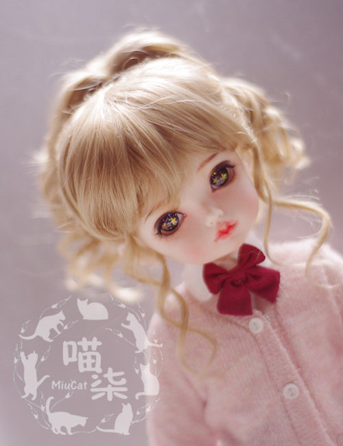 MiuCat巨婴假发 BJD娃娃用高马尾辫 8-9寸仿马海卷发 适用14岁以上 奶茶棕假发 [Original Page Link]