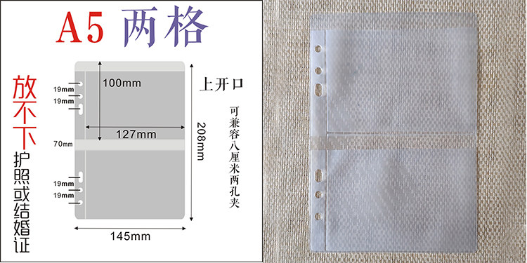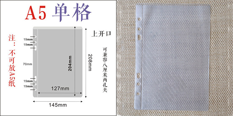 A4A5A6磨砂活页拉炼袋本夹手帐拉边袋PVC收纳袋票据袋标准通用孔 [Original Page Link]