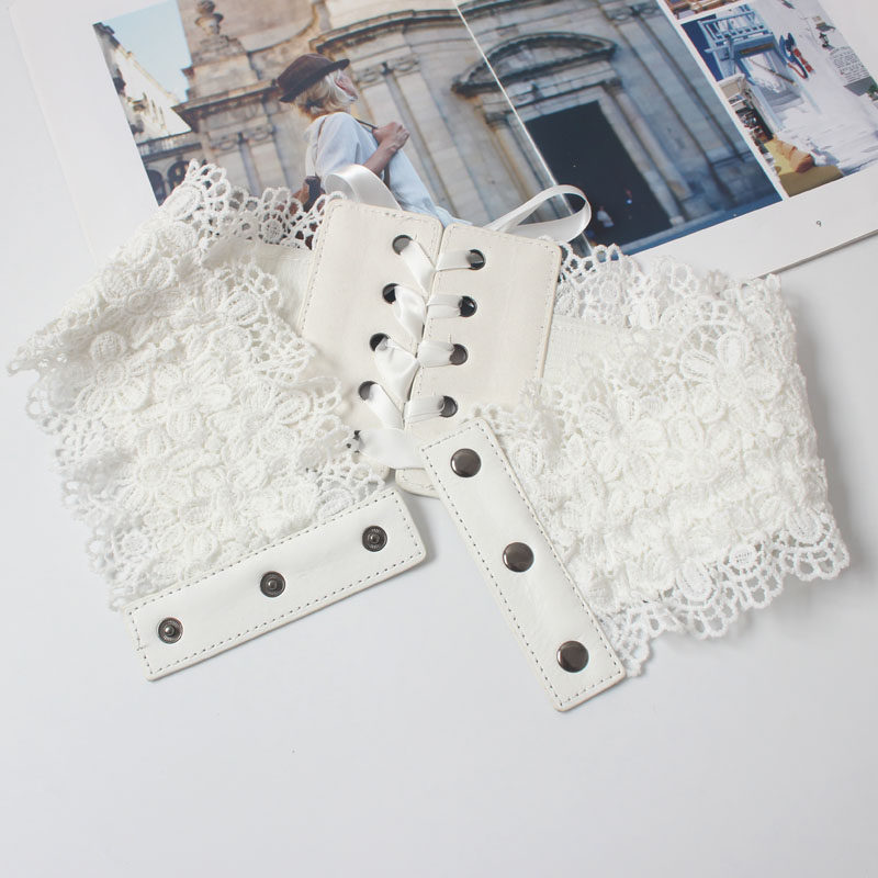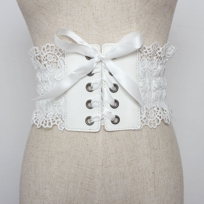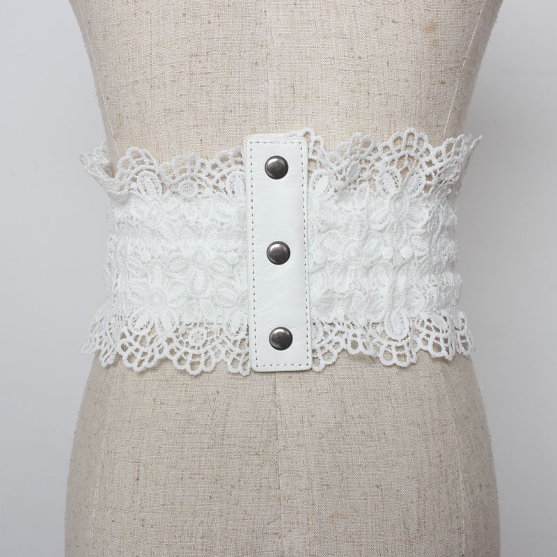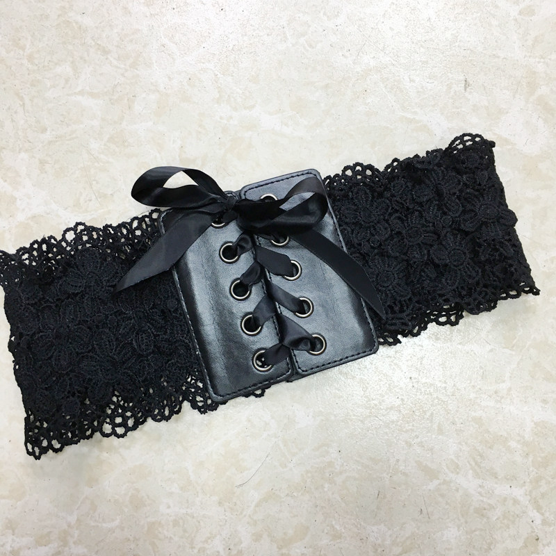 Waist belt for women with lace decoration and skirt, elastic wide elastic waist, ins red belt, chic belt, shirt, all-match