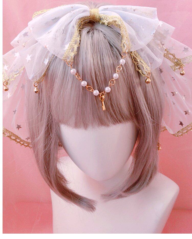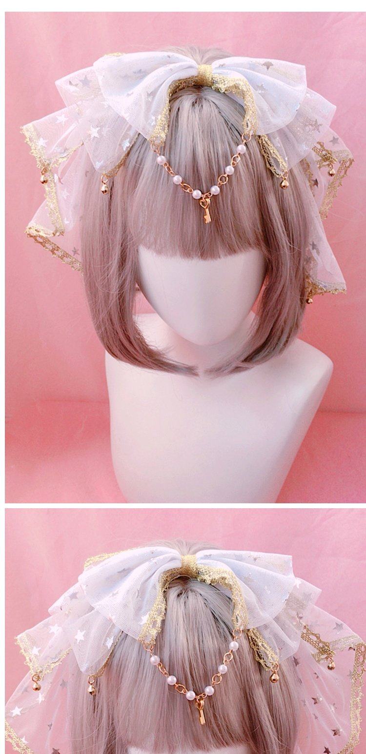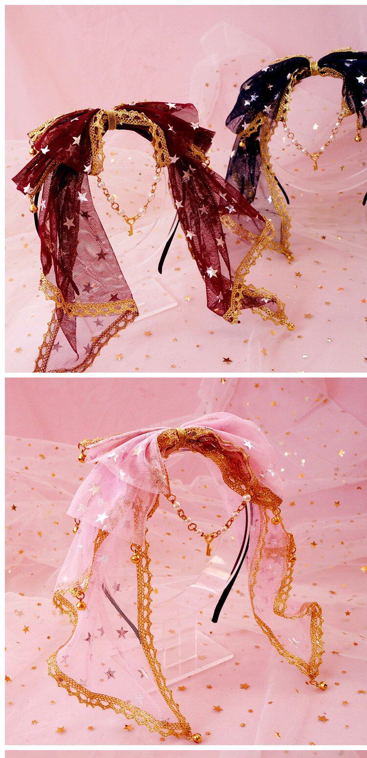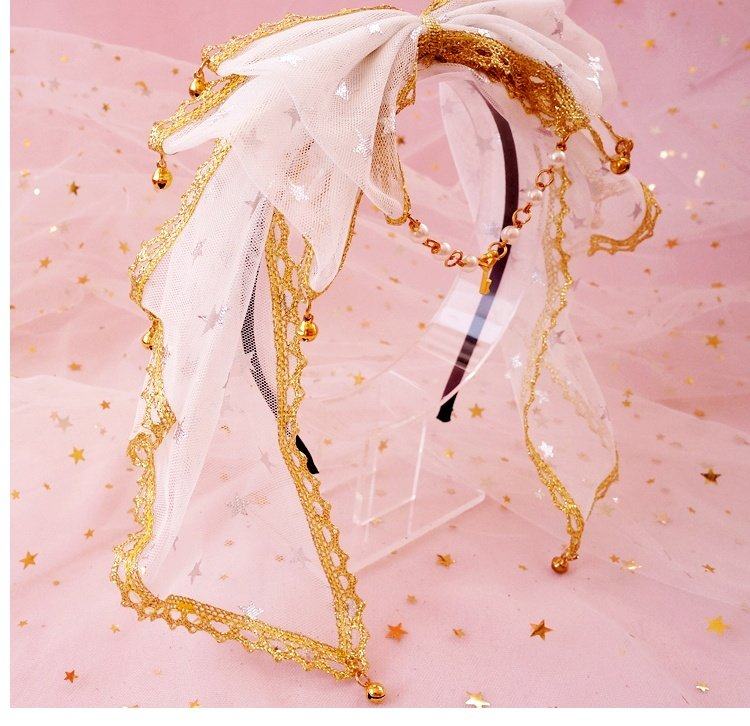 Yingluojia Original Handmade Soft Girl Lolita Bow Headband with Beautiful Chiffon Bell Kc Headband Hair Accessory