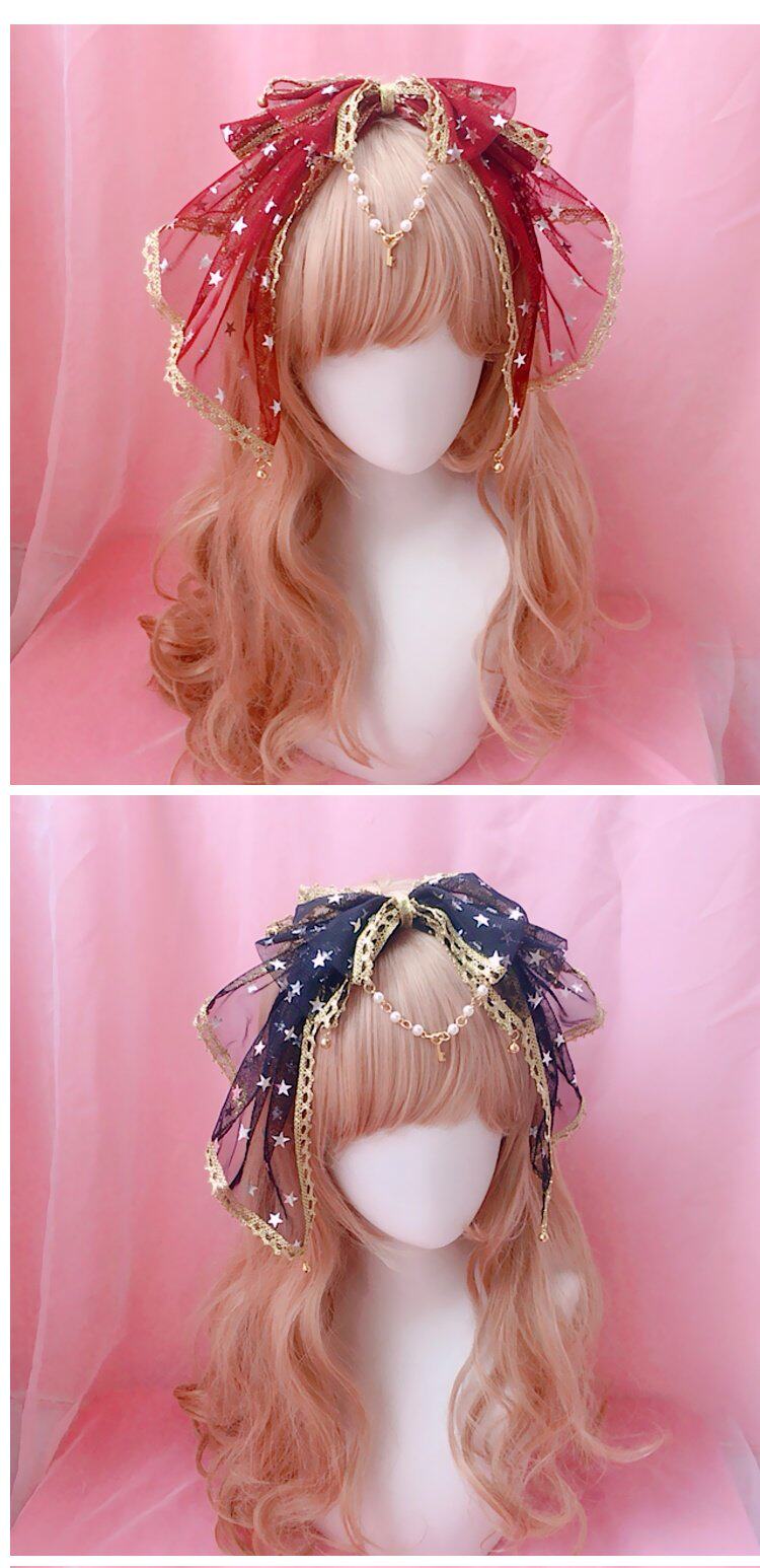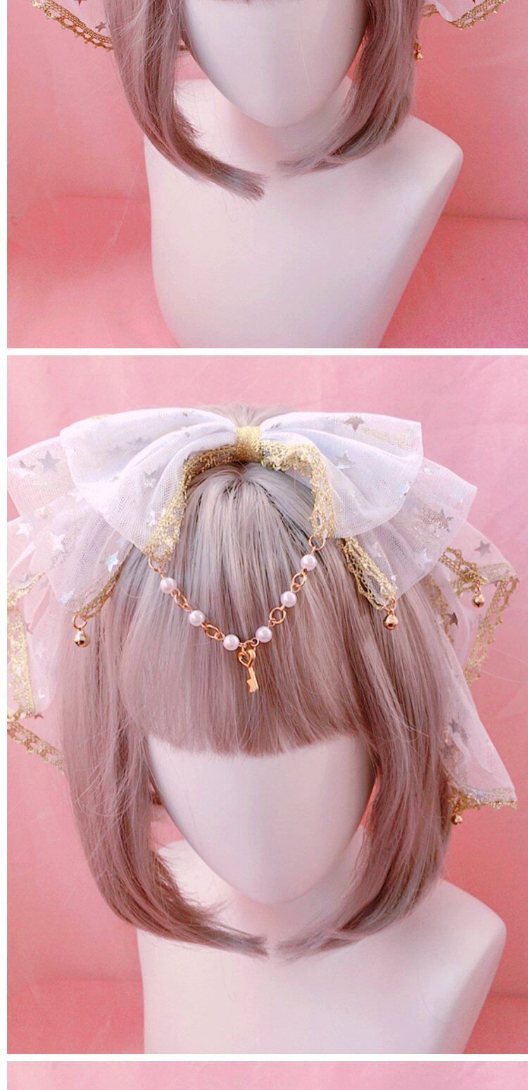 英珞嘉原创手工软女孩洛丽塔蝴蝶结发带美丽的雪纱铃铛Kc发带发饰 [Original Page Link]