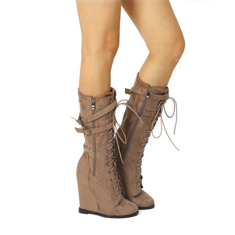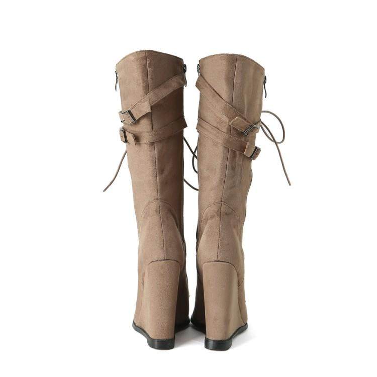 欧美外贸超大码36—47跨境超高跟绑带坡跟系带长靴女靴 [Original Page Link]