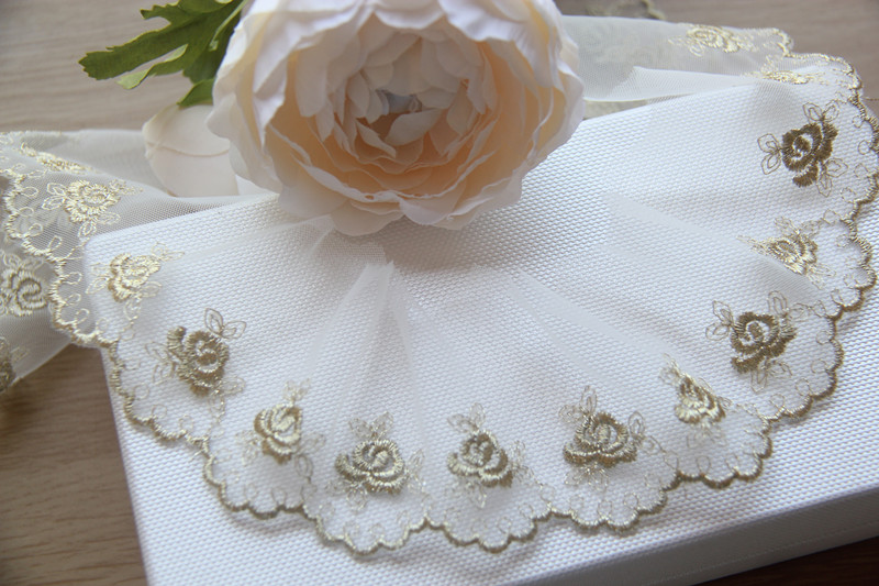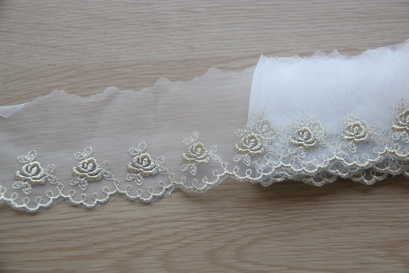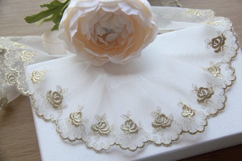 手工DIY服装辅料日版棉网蕾丝玫瑰金线网纱刺绣花边宽5.5cm [Original Page Link]