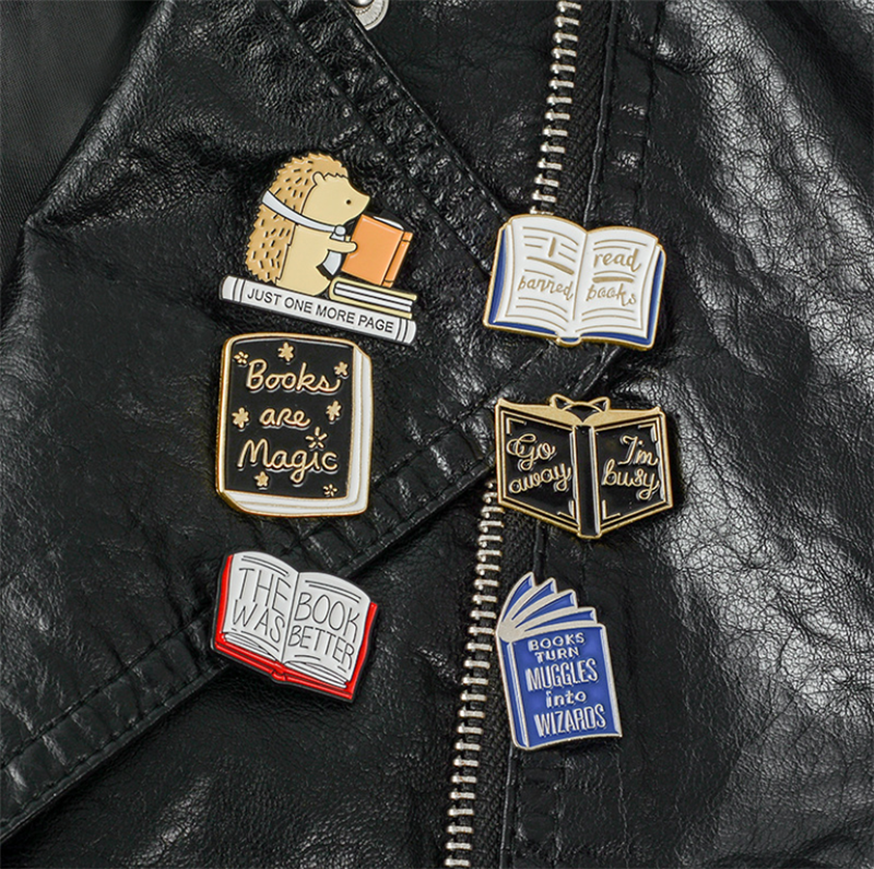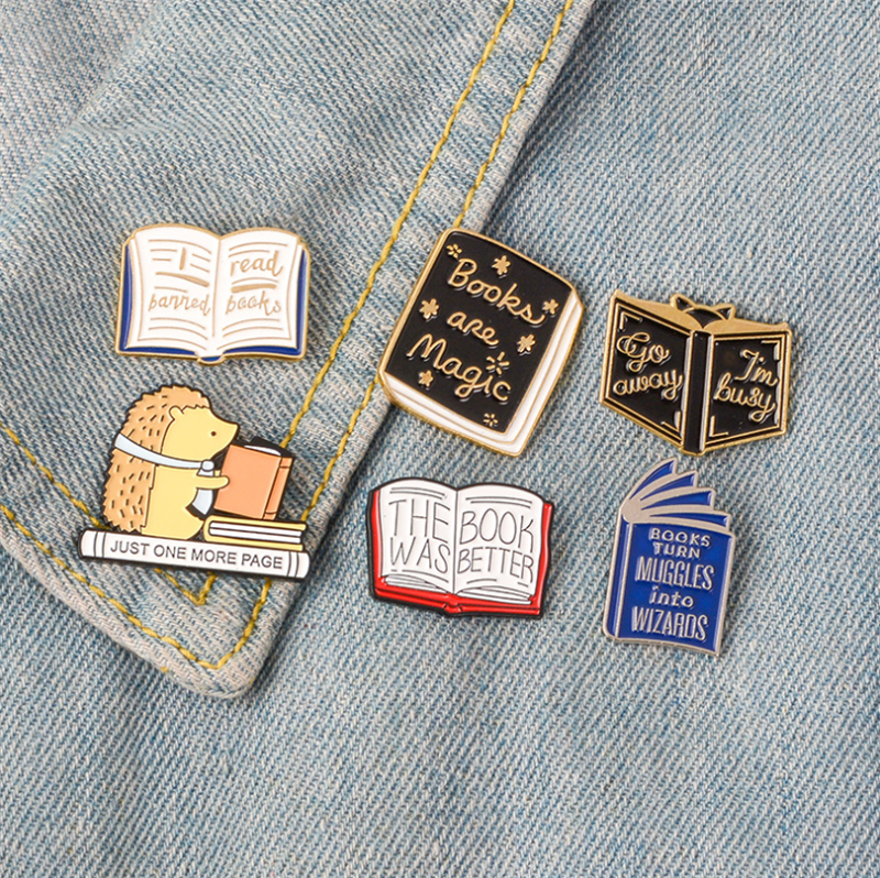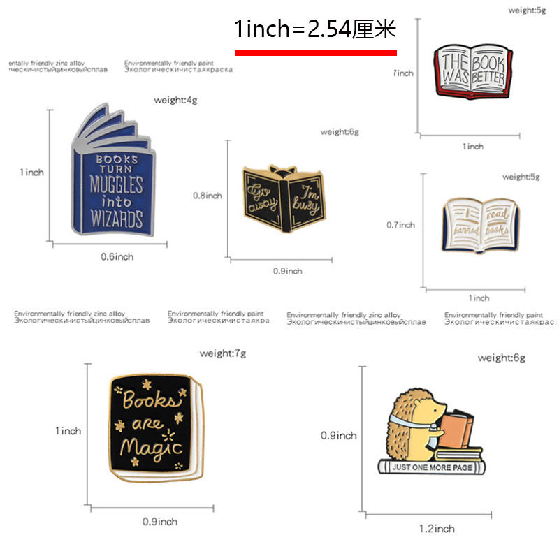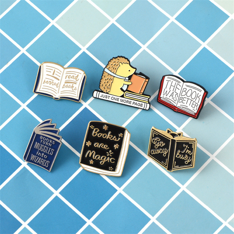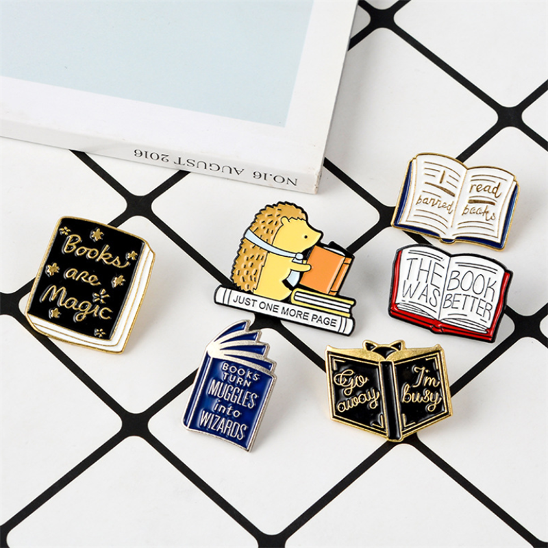 2019热销卡通书本翻页书胸针 刺蝟看书字母徽章 学生百搭书包别针 [Original Page Link]