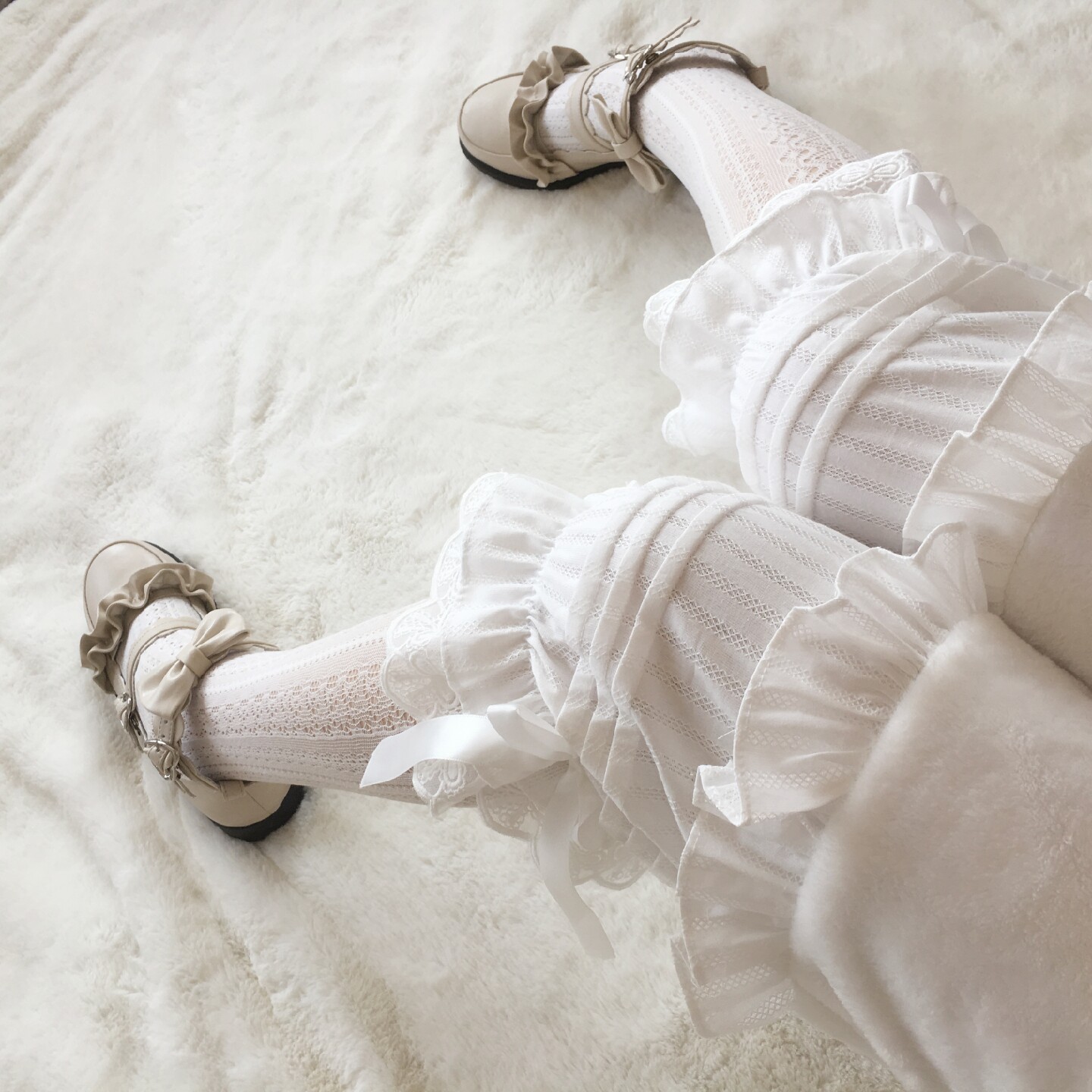 本店模特实物拍摄 模特搭配的jk 本店有售,这款南瓜裤真的很百搭可以搭配日常的lolita和jk 后面是3层荷叶边有自然蓬松,