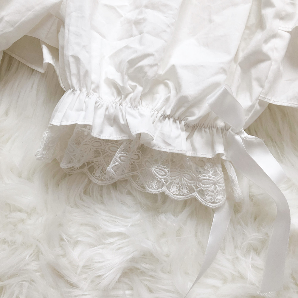 细节图 前面是纯白色的背后是加了荷叶边,用料十足也十分的舒服