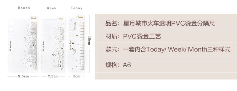 A6烫金书签尺子分隔页垫板 星辰火车Today星期月份活页手账本配件 [Original Page Link]
