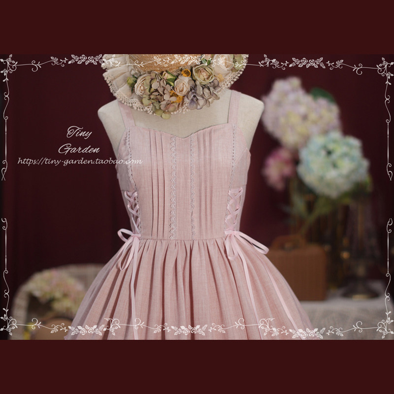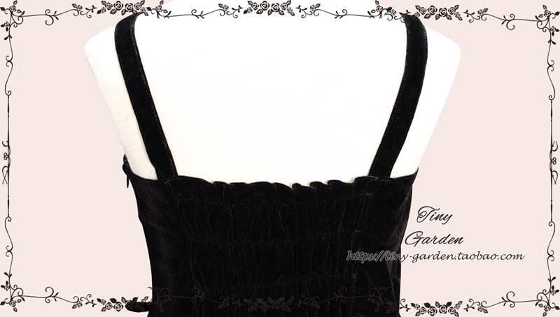 花园舞曲2.0版长款Lolita背心裙 双抽带蝴蝶结甜美连衣裙 松紧腰纯色丝绒JSK吊带裙 [Original Page Link]