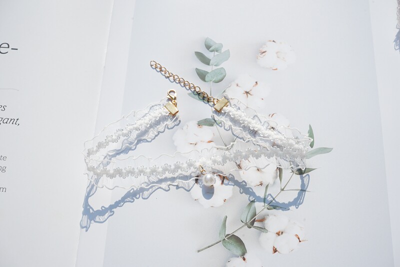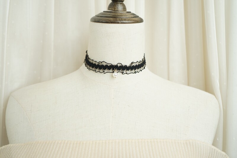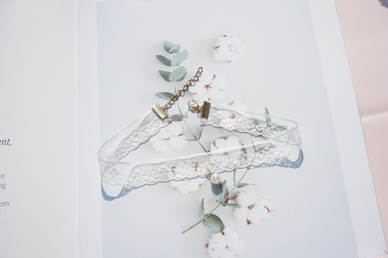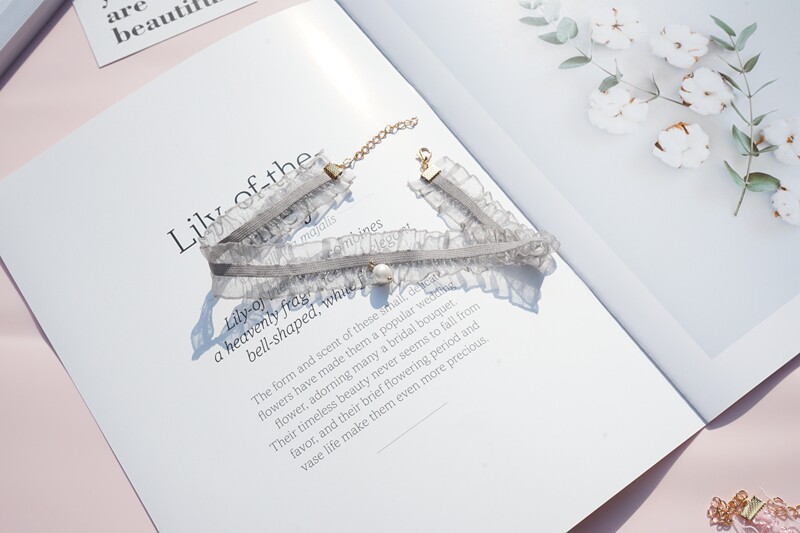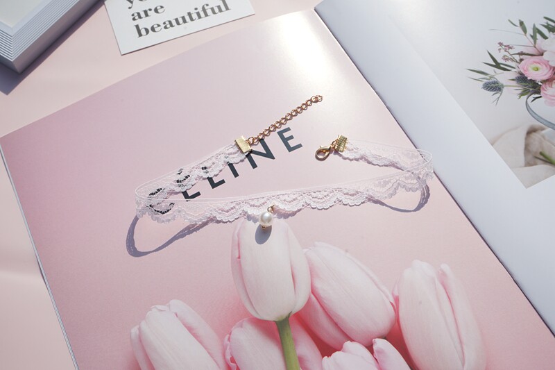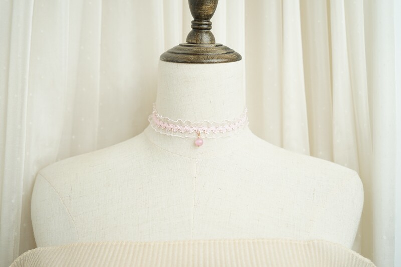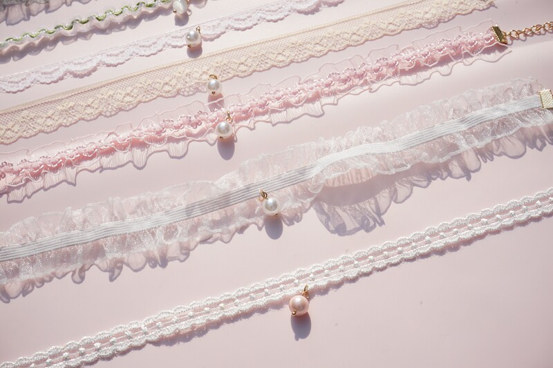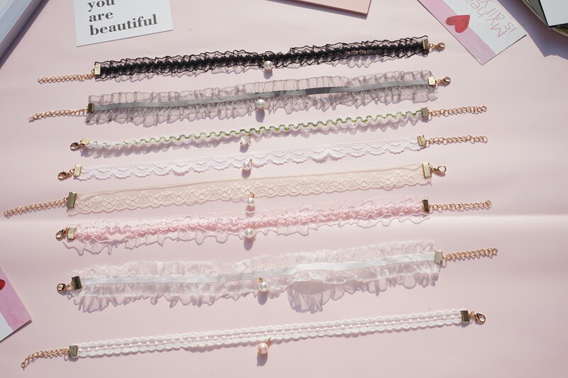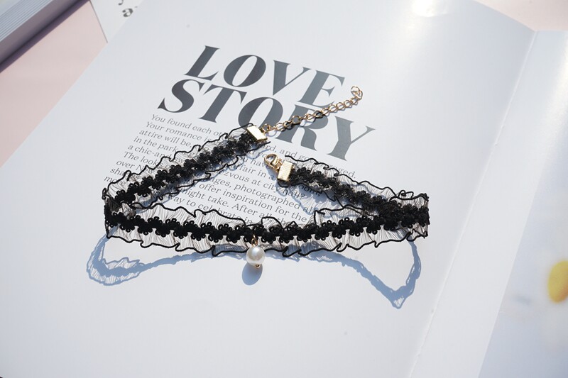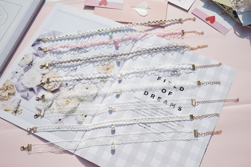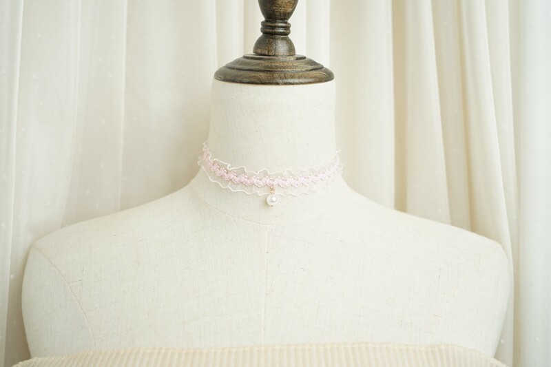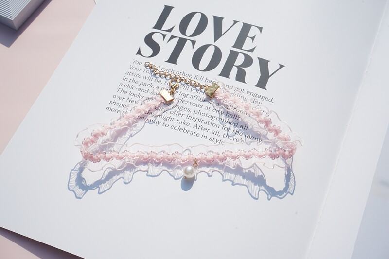 韩版超仙粉色蕾丝珍珠吊坠choker锁骨链甜美温柔气质短款少女颈带 [Original Page Link]