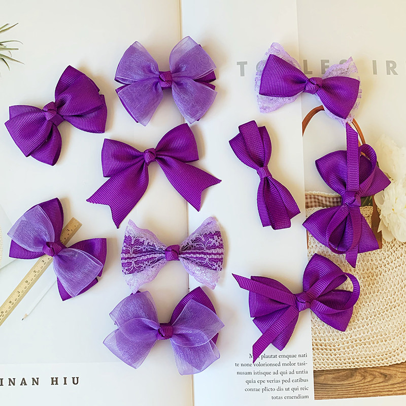 紫色手工蝴蝶结发饰女童可爱发夹边夹小女孩头花发卡碎发刘海夹 [Original Page Link]