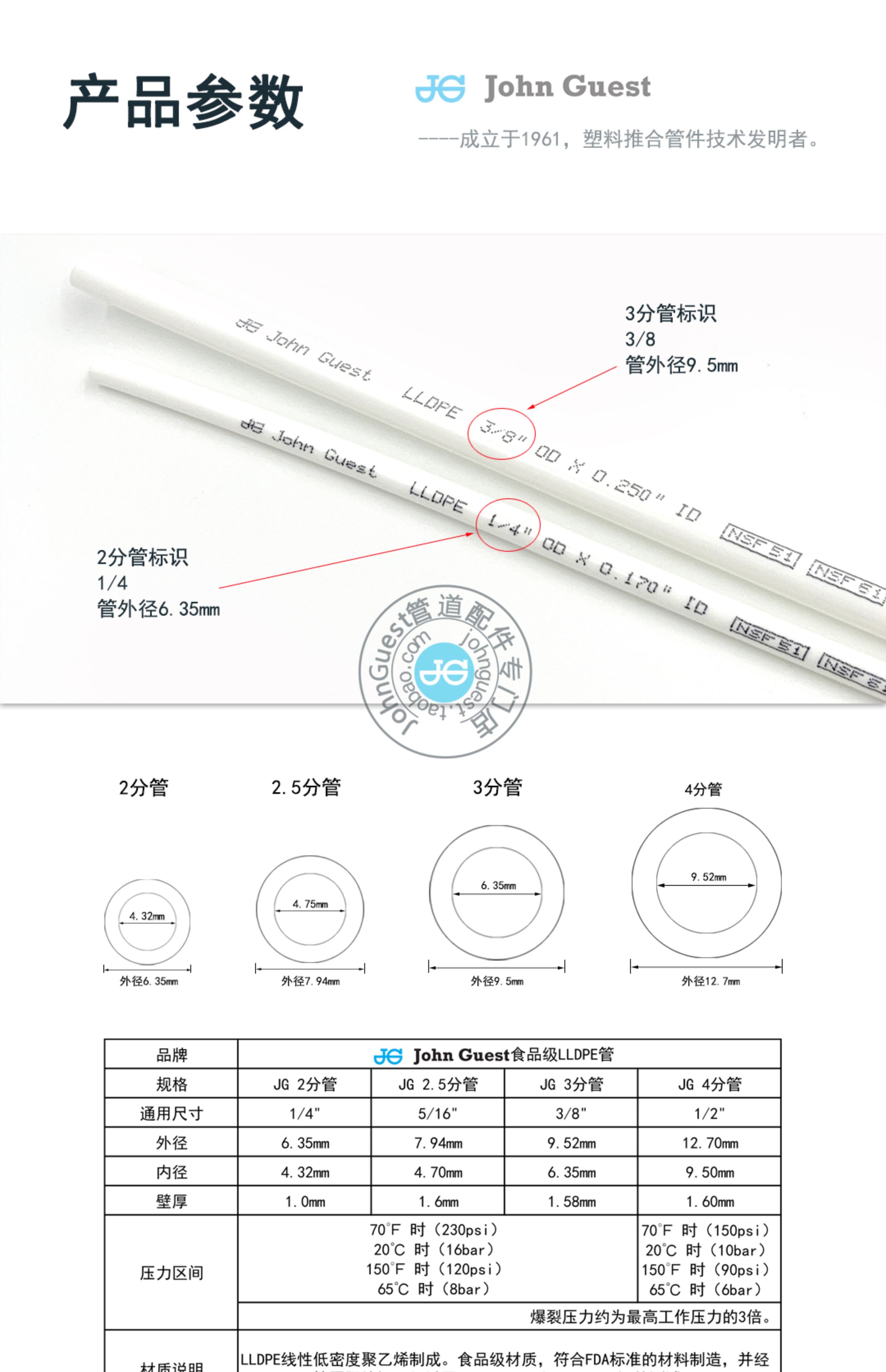 3/8 3分JohnGuest英国进口PE管食品级直饮水RO纯水机咖啡啤酒管 [Original Page Link]