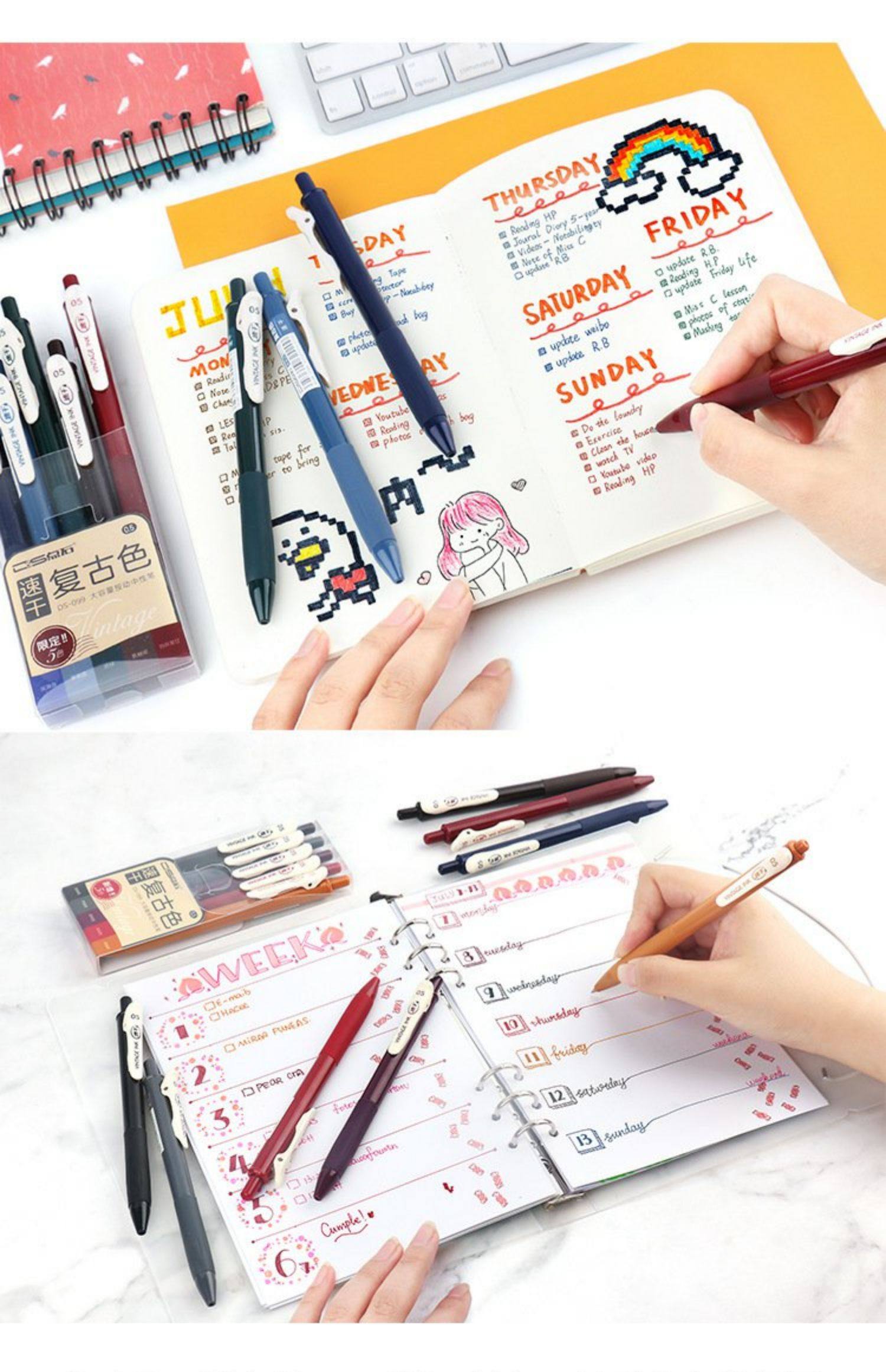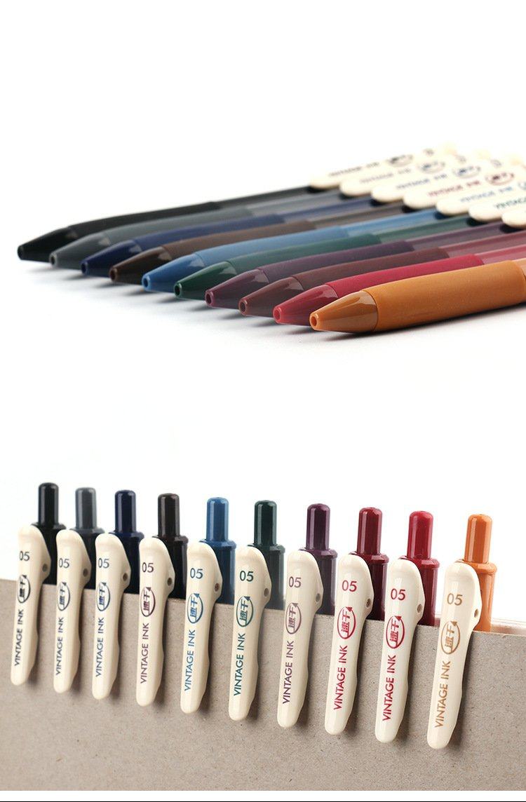 INS minimalist neutral pen, 0.5mm colored bullet tip, quick-drying, simple retro style, push-button water-based pen, specially designed for journaling.