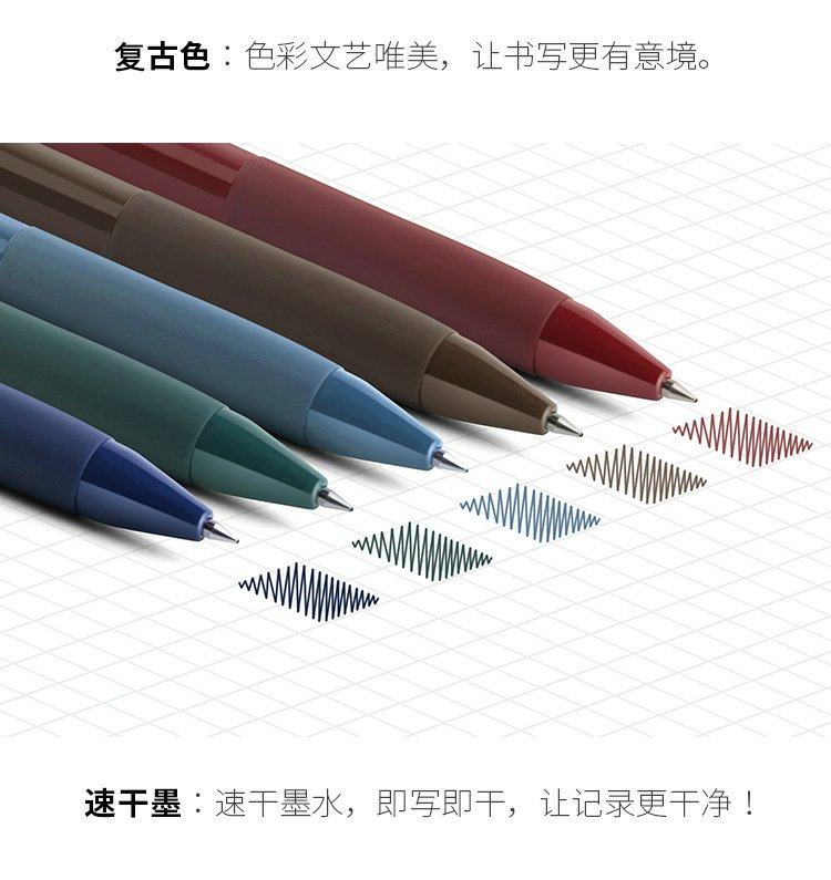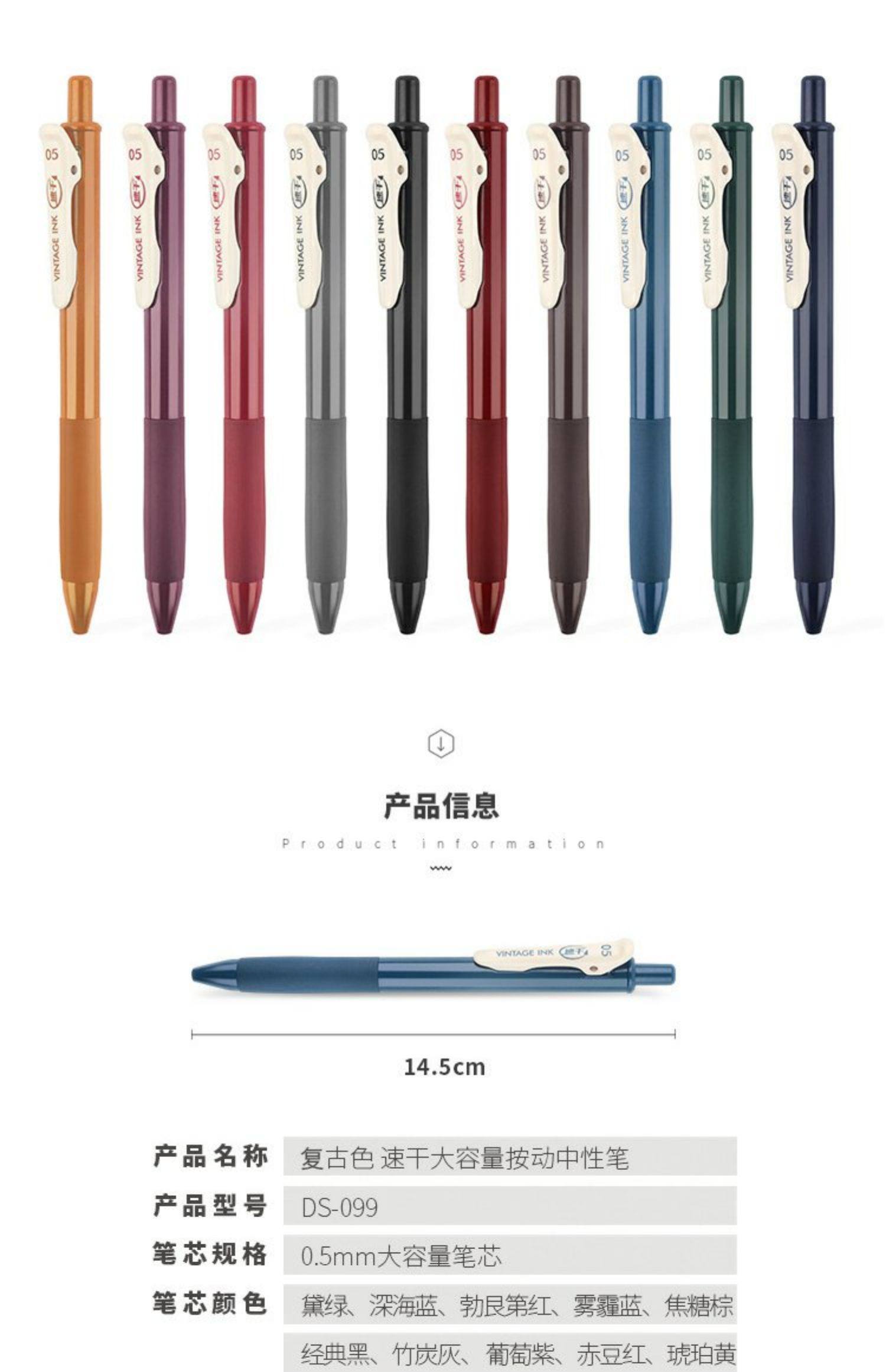 INS冷淡中性笔0.5mm彩色子弹头速干简约复古按动式水性笔手帐专用 [Original Page Link]