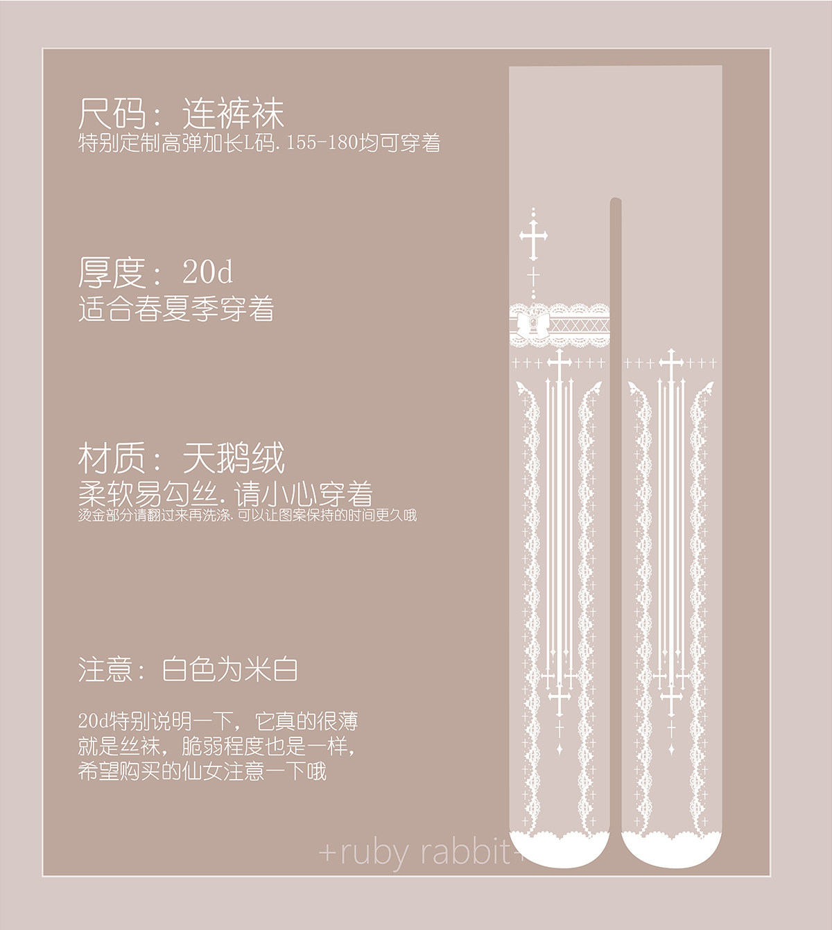ruby rabbit【现货】魔女 原创lolita袜子薄连裤袜印花女蕾丝白色 [Original Page Link]