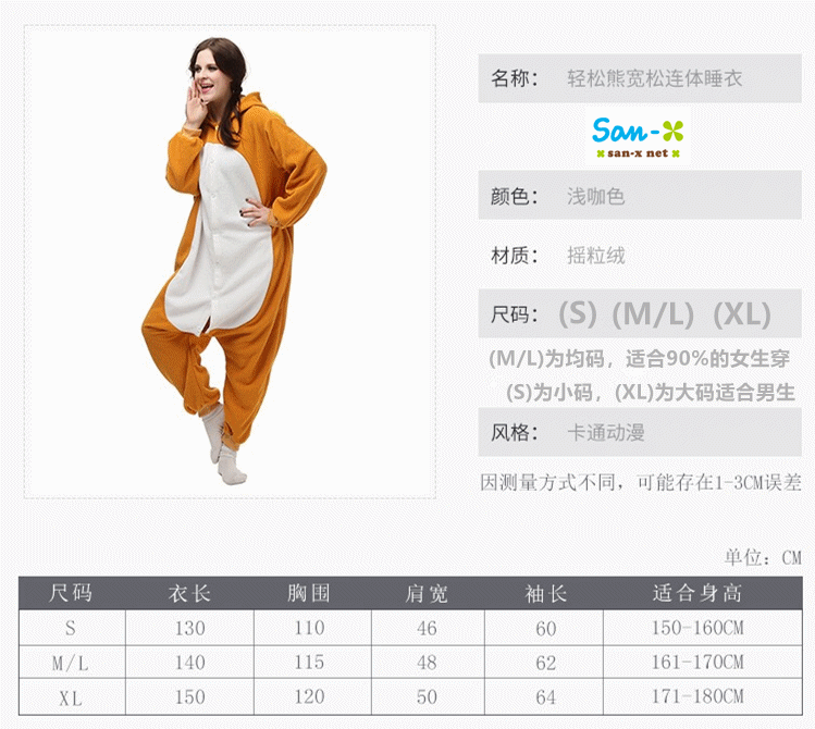 现货Rilakkuma日本采购正品轻松熊情侣保暖连体睡衣可爱熊偶服COS [Original Page Link]