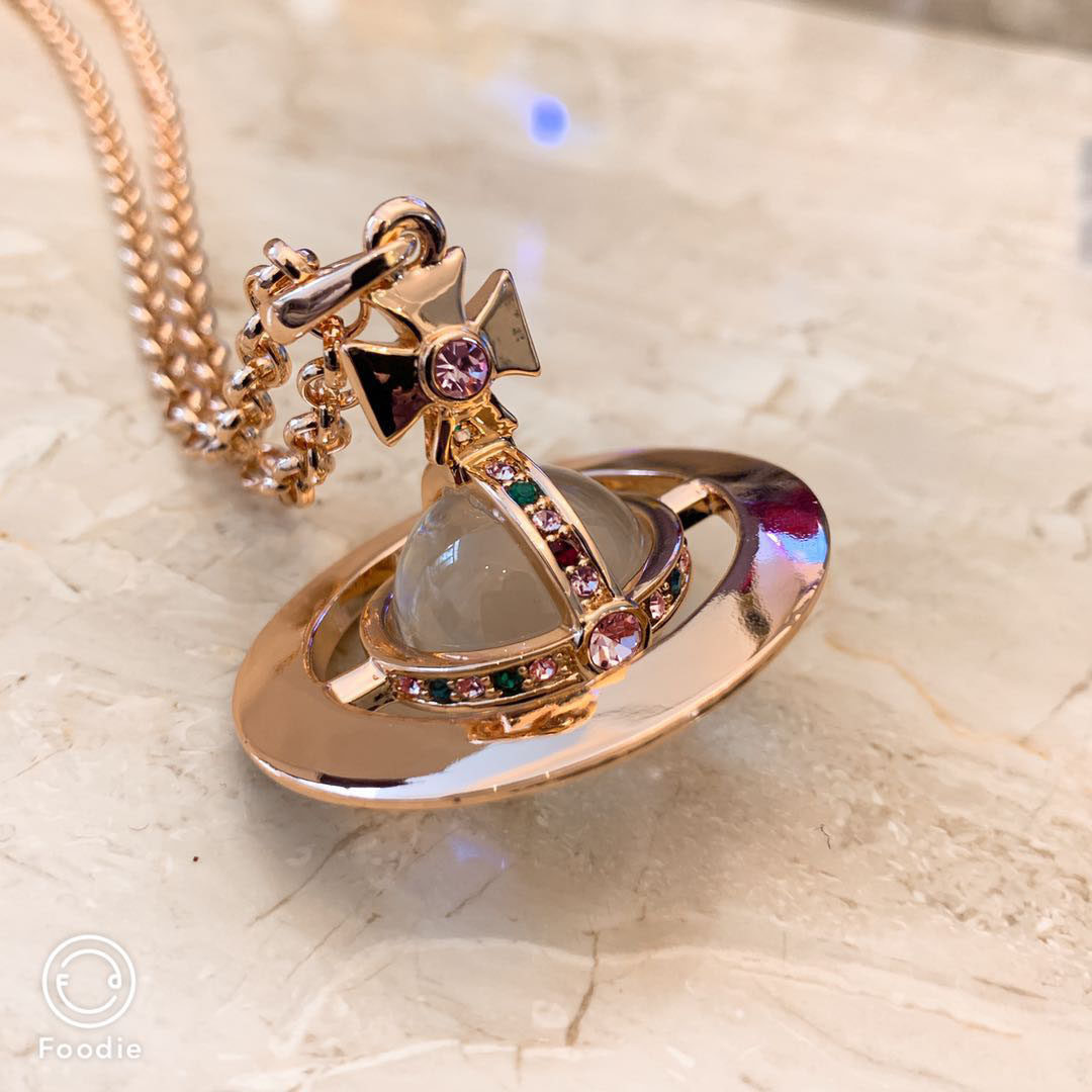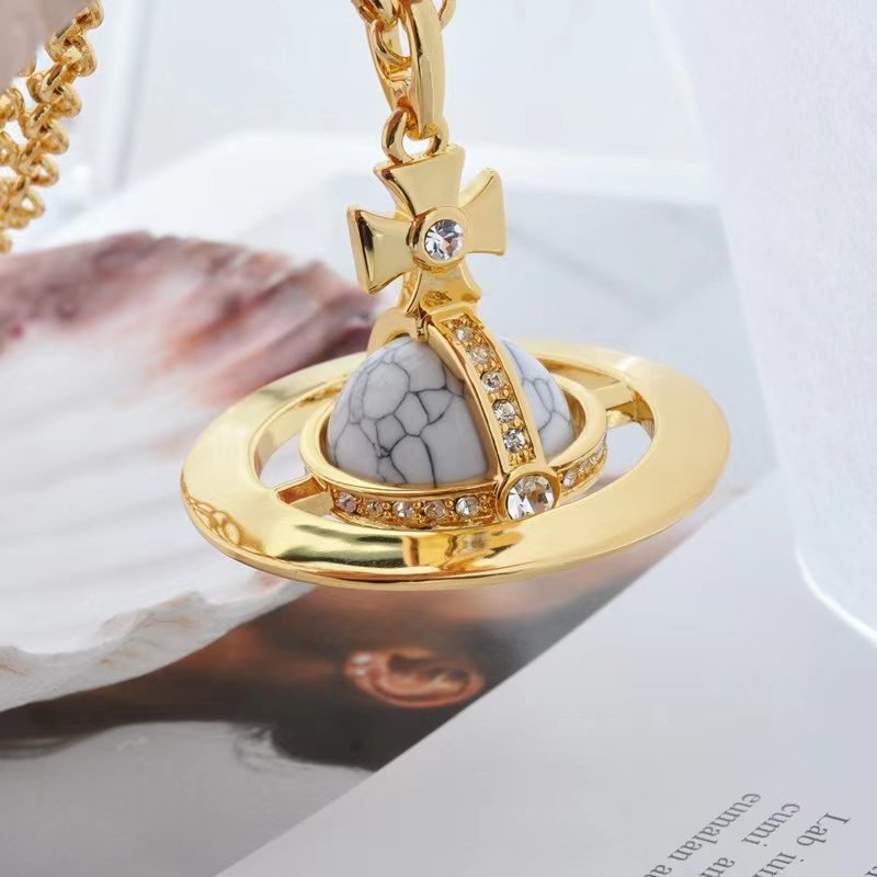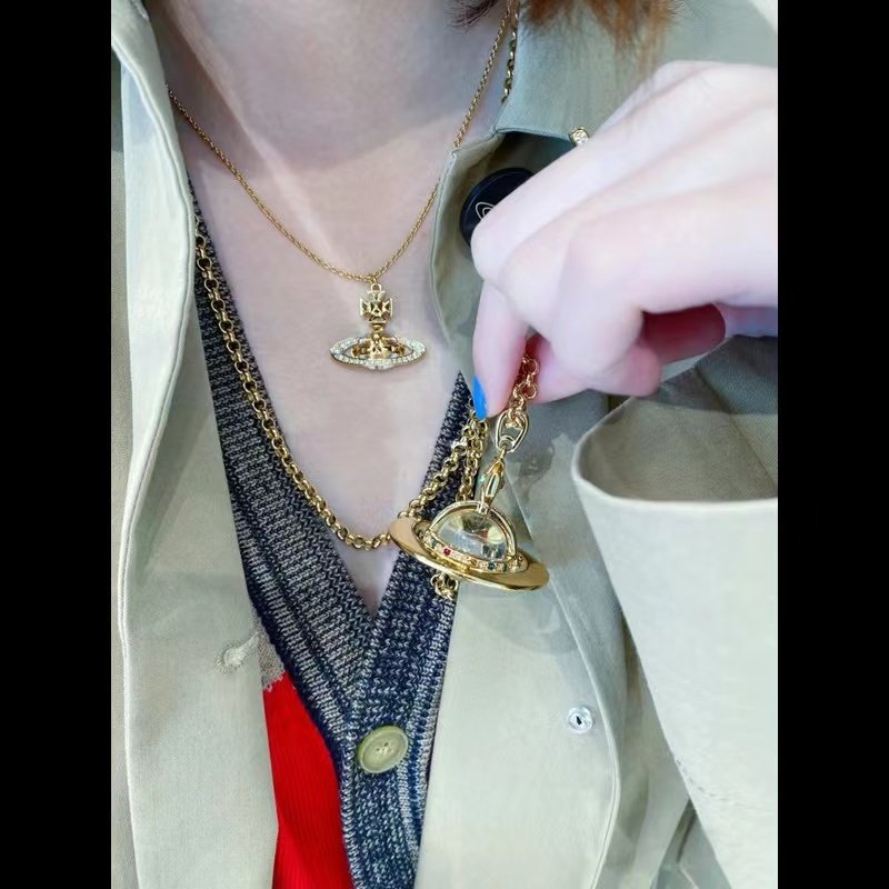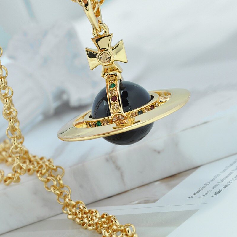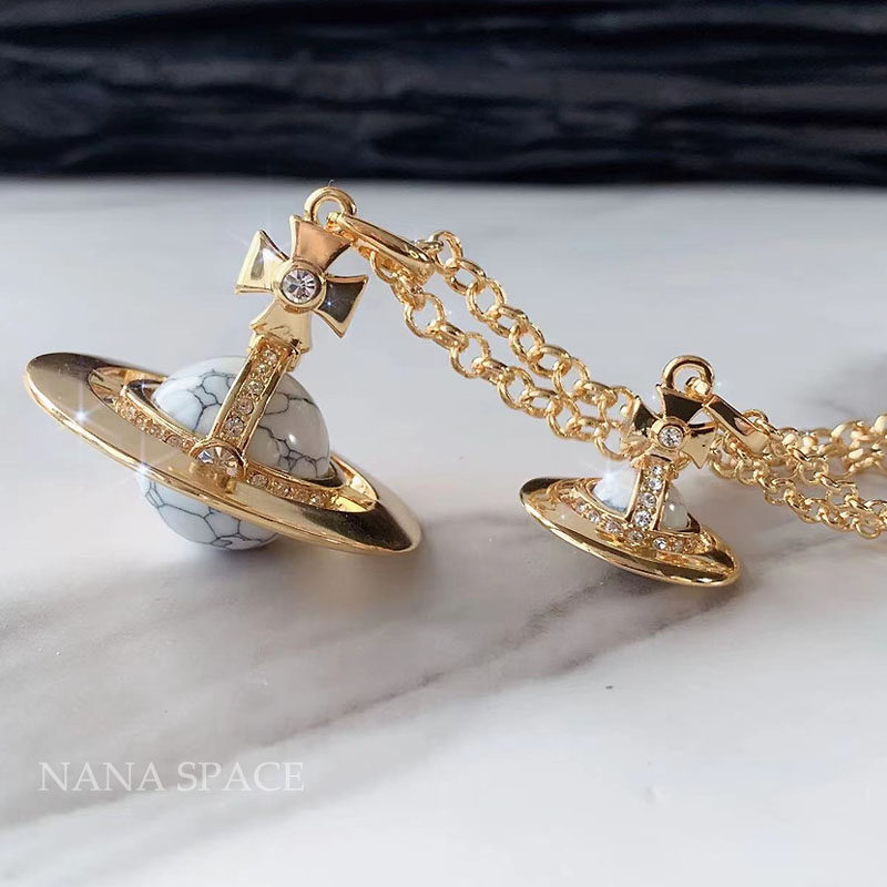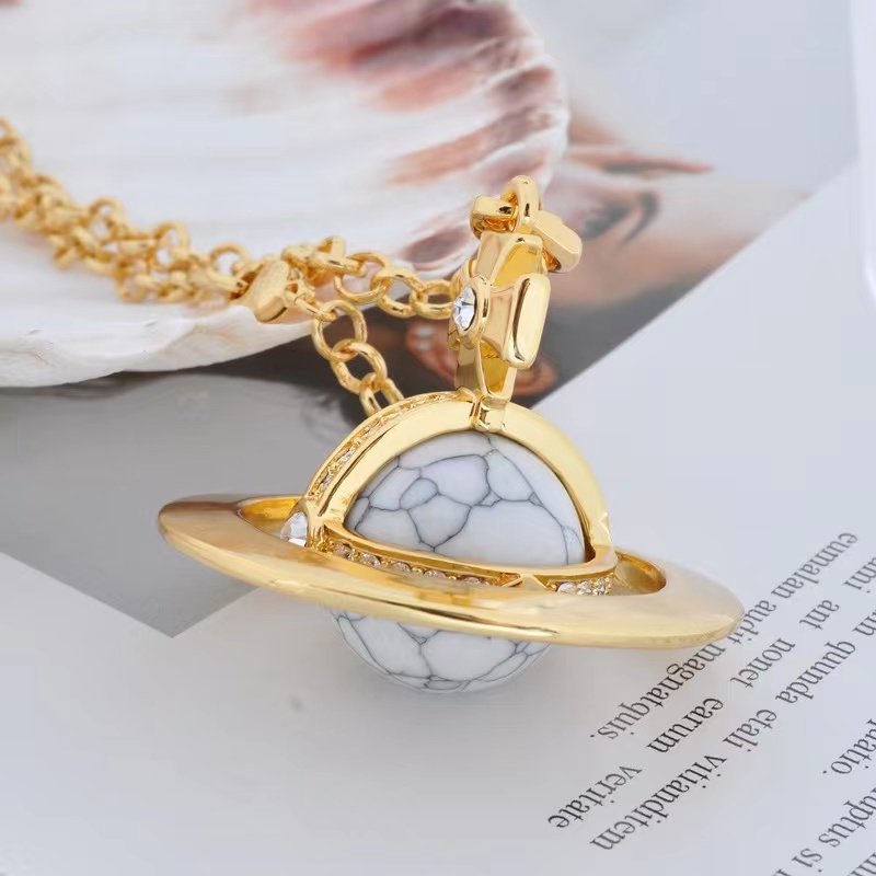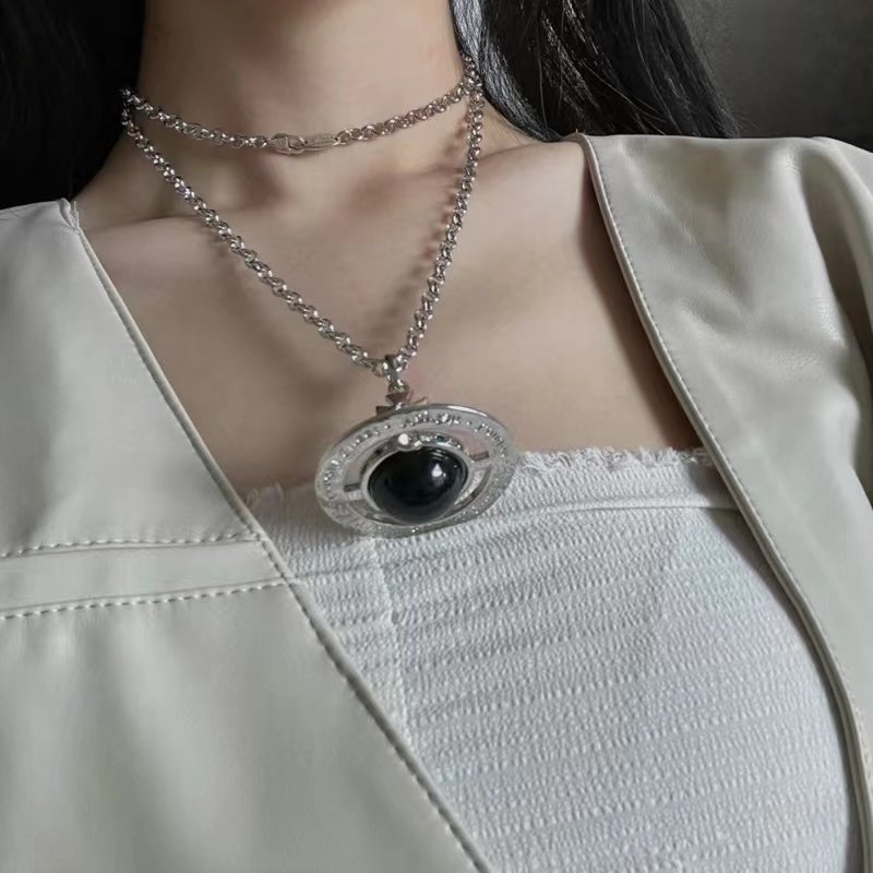 NANASPACE-INS same style engraved advanced version of three-dimensional Saturn large orb sweater necklace neutral in stock