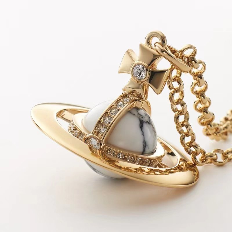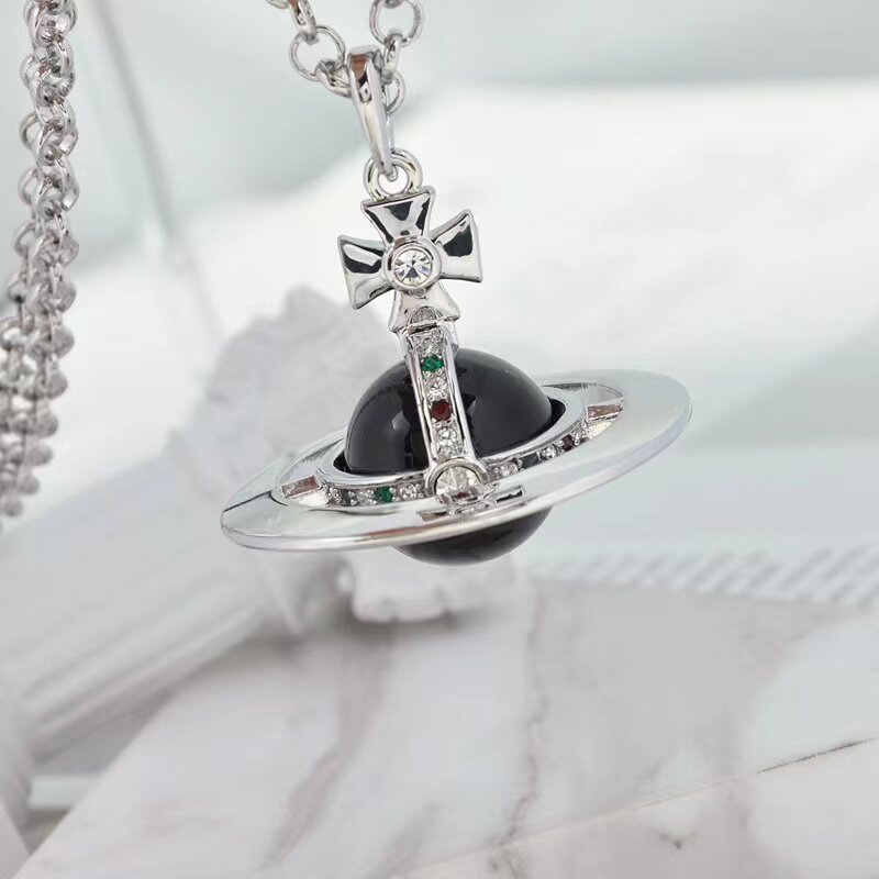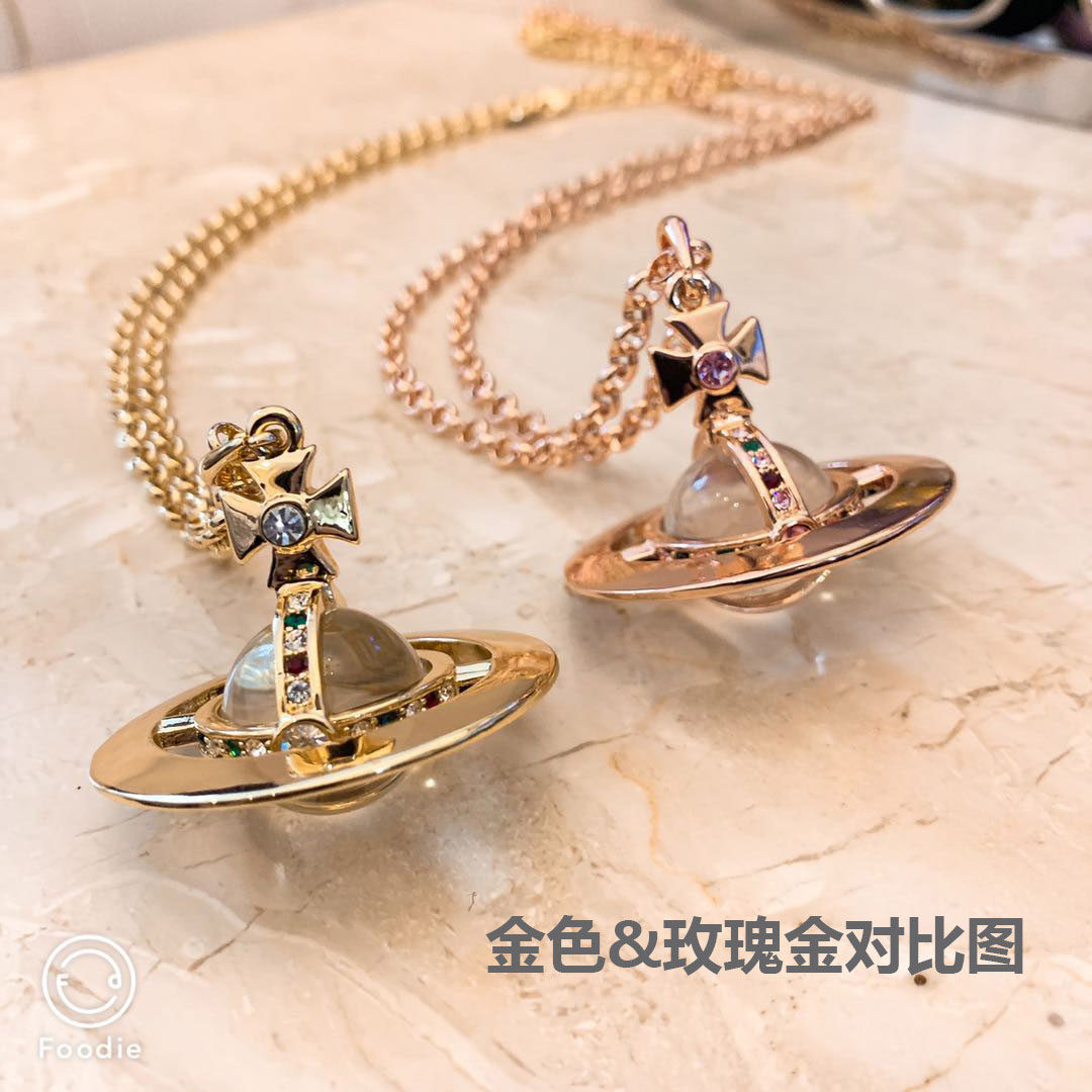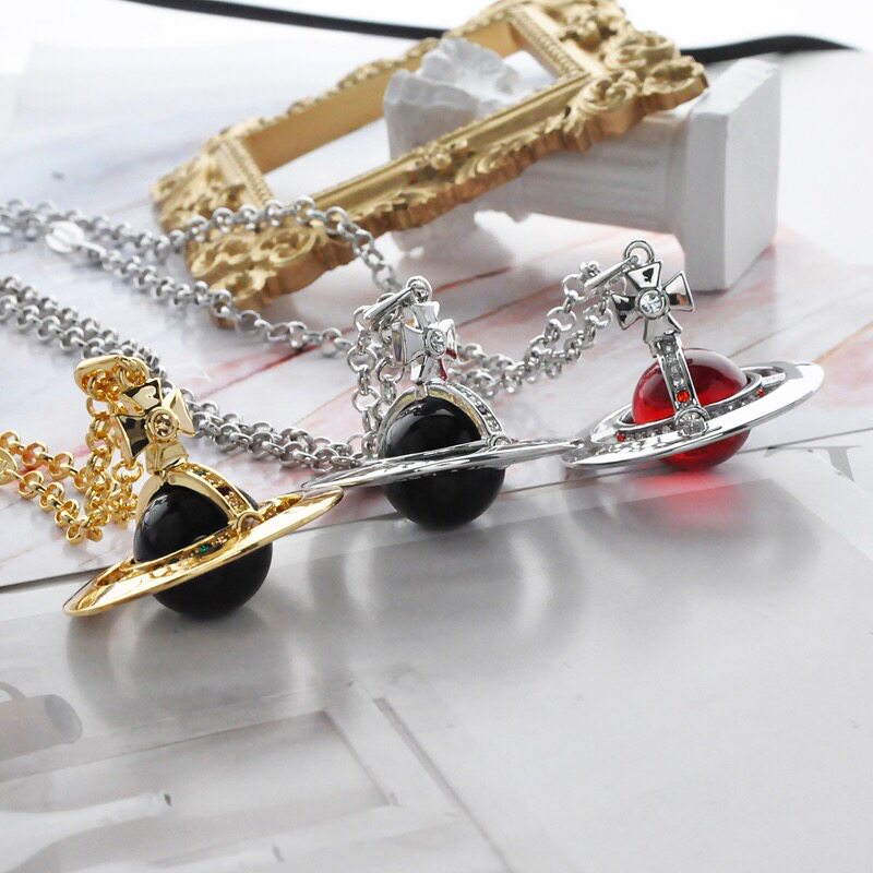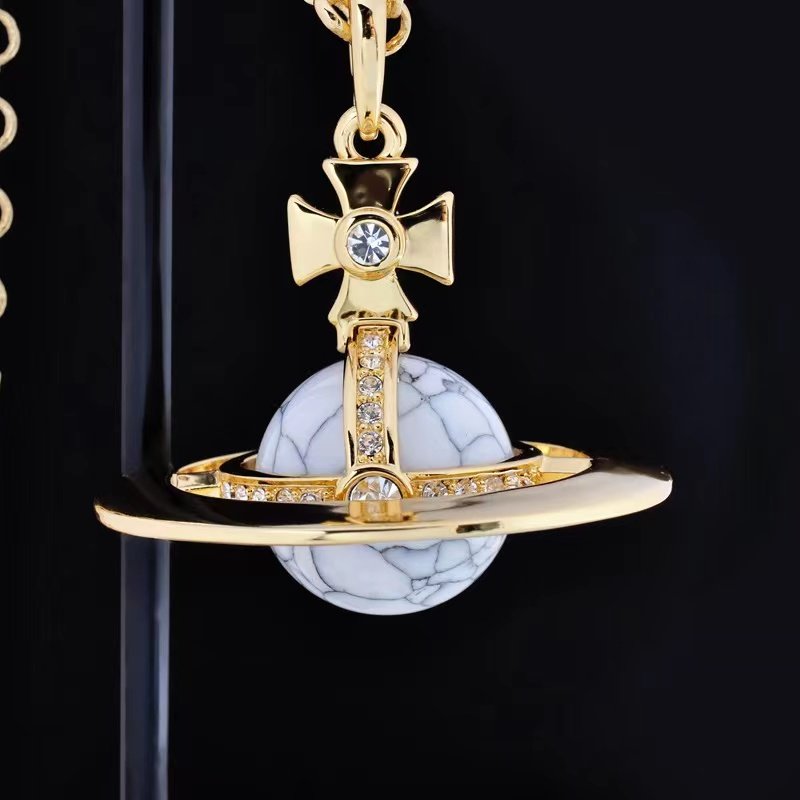 NANASPACE-INS same style engraved advanced version of three-dimensional Saturn large orb sweater necklace neutral in stock