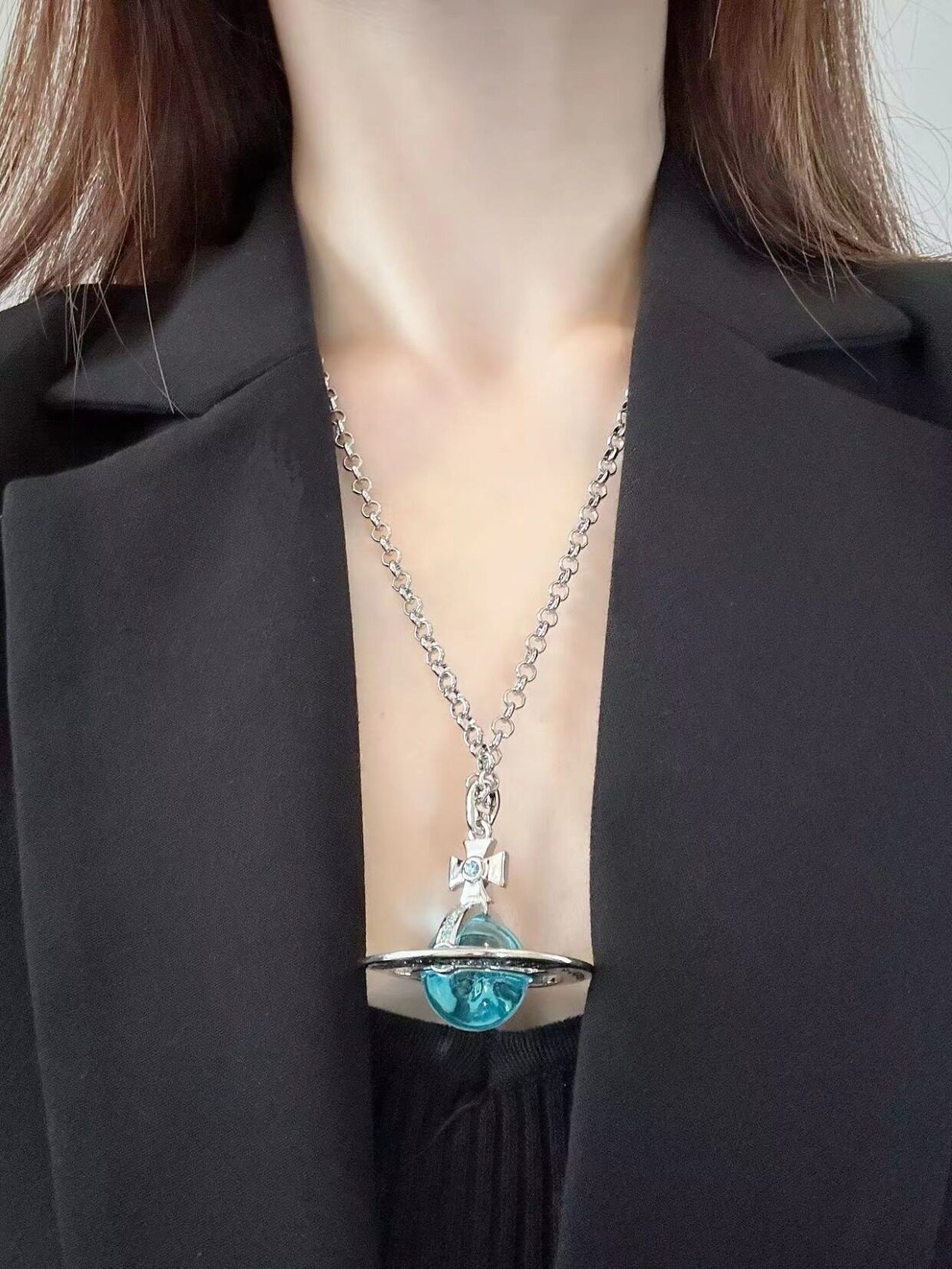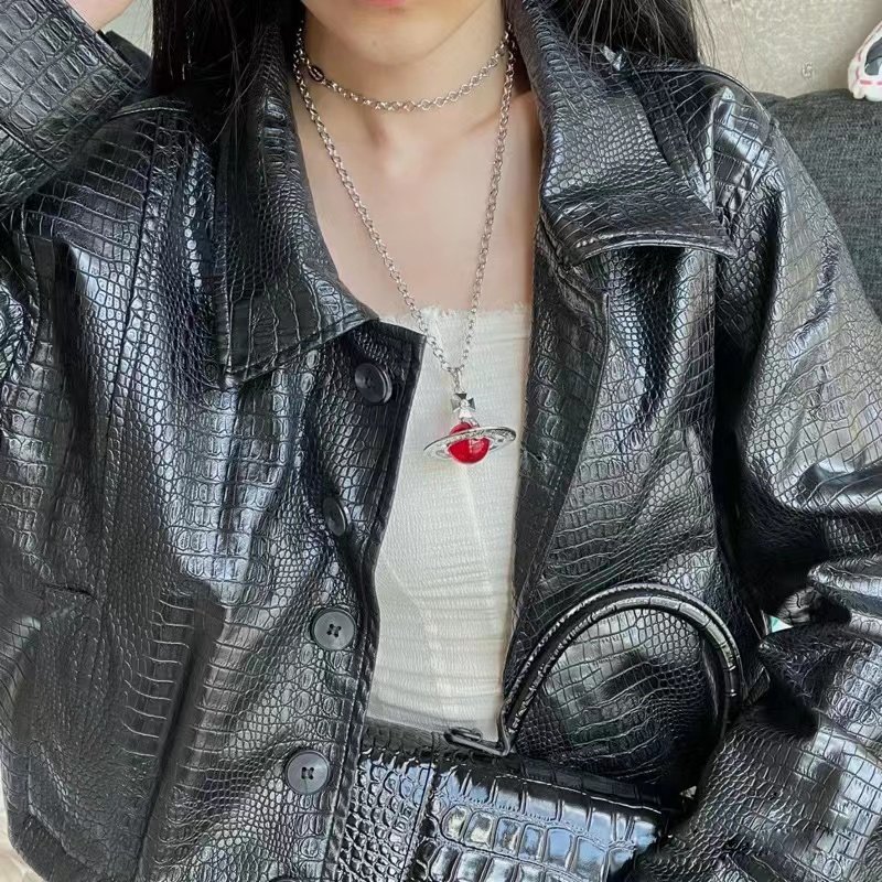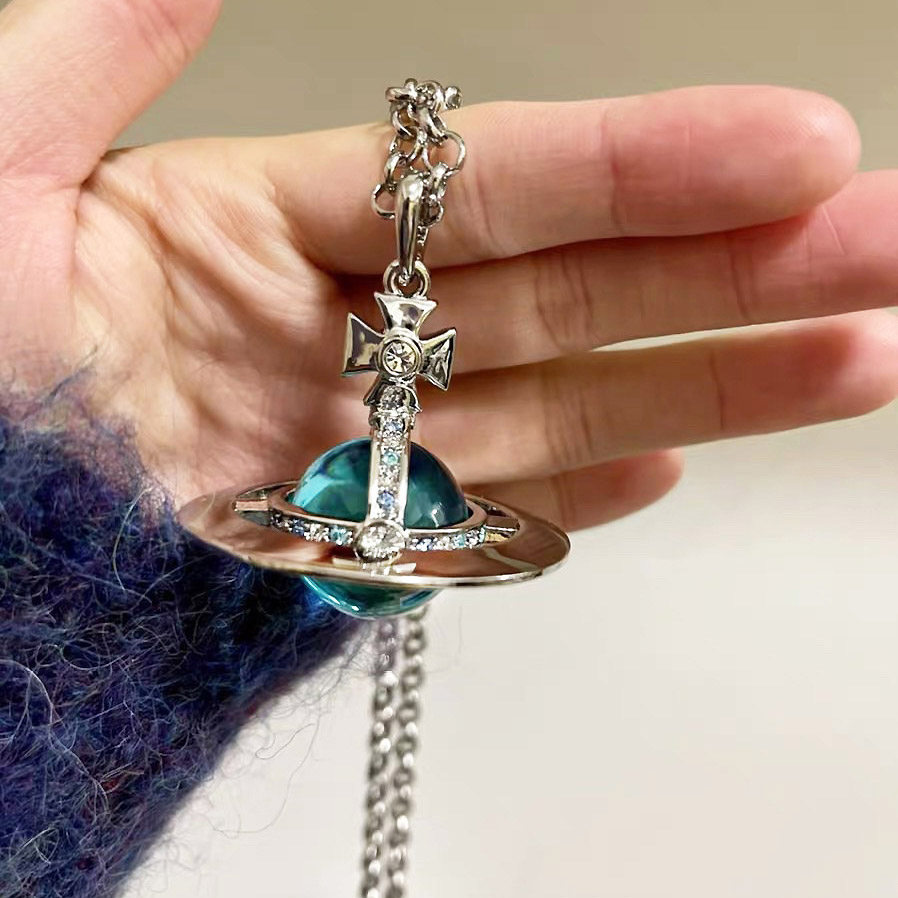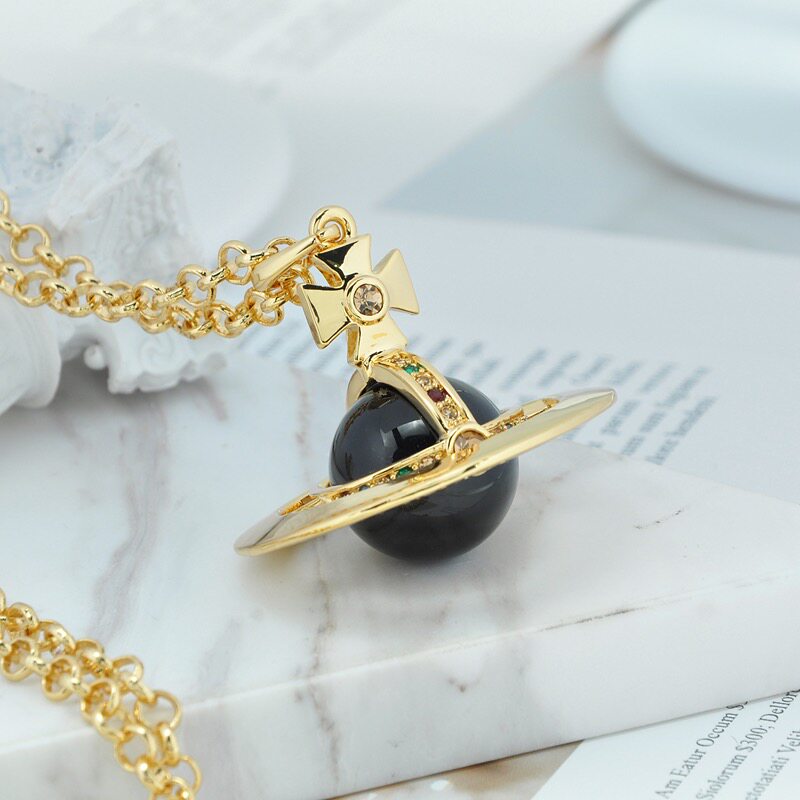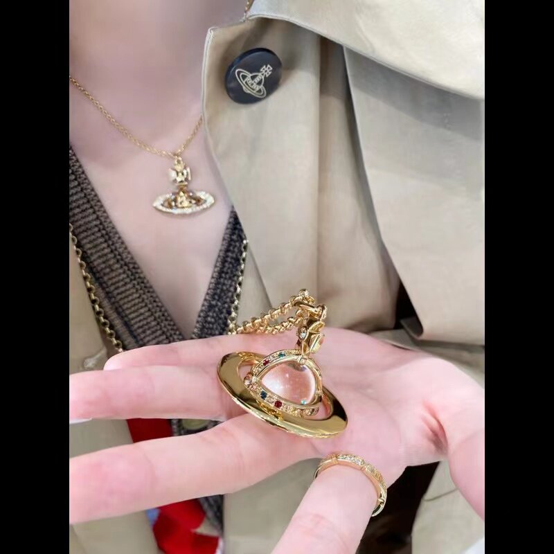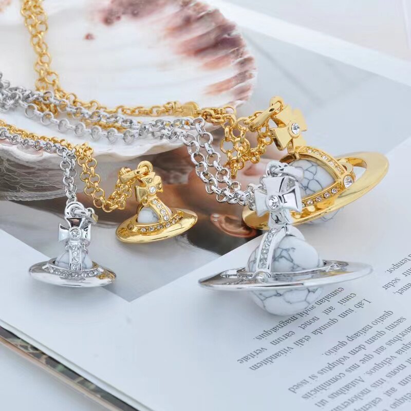 NANASPACE-INS same style engraved advanced version of three-dimensional Saturn large orb sweater necklace neutral in stock