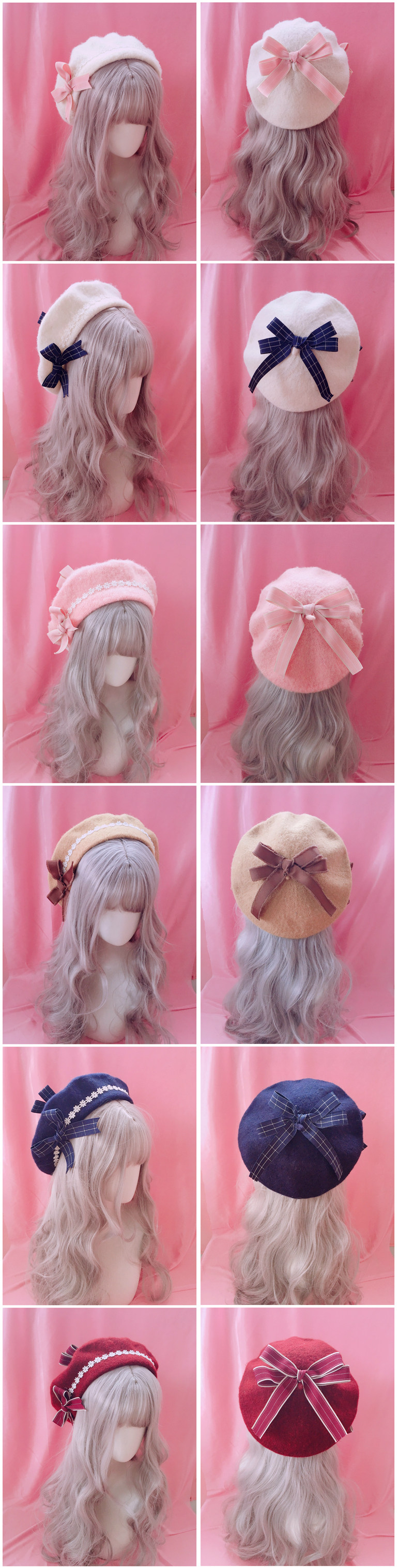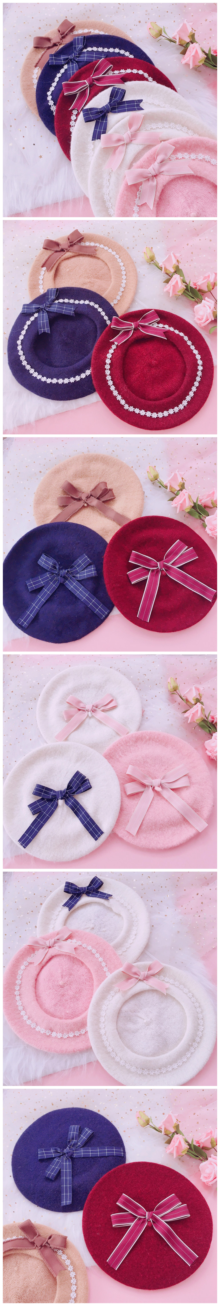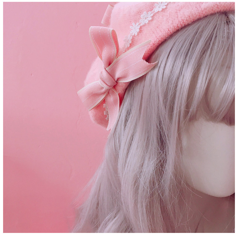 日系贝雷帽lolita少女甜美可爱百搭毛呢女软妹雏菊手作蝴蝶结蓓蕾 [Original Page Link]