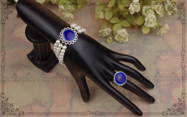 宝蓝瓷片+白珍珠~~非常高贵大方的一个颜色~~~