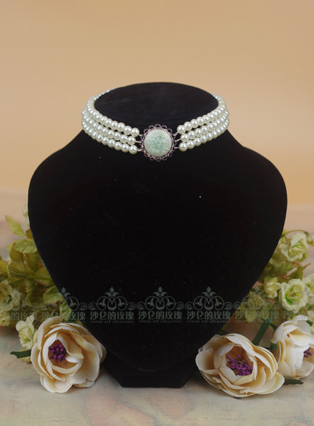东方神韵的冰瓷和欧洲宫廷风三层珍珠项圈的搭配,就如同惠斯勒的作品一般,晕染上特别的气质